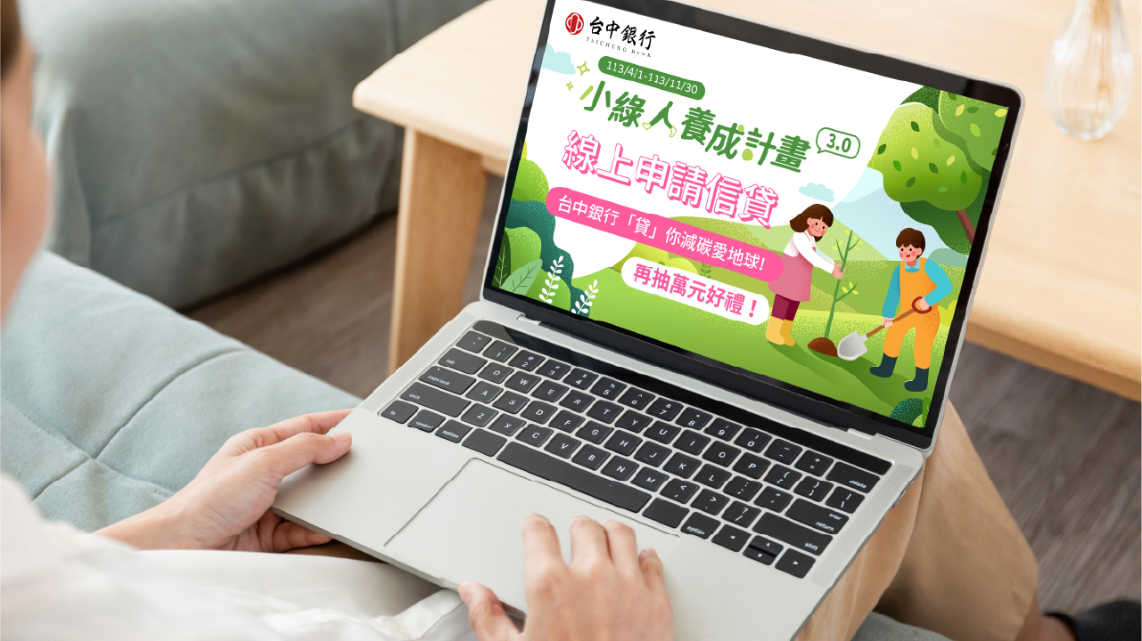 ↑圖說:台中銀行七彩貸愛地球,線上申貸減少紙張使用,還可享手續費享五折。(圖片來源:台中銀行提供)