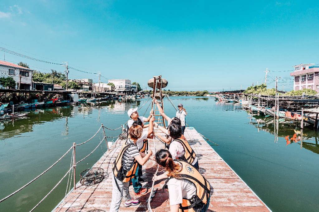 ↑圖說:搭乘舢筏船遊茄萣二仁溪體驗舊時吊罾捕魚法(圖片來源:高雄市觀光局提供)