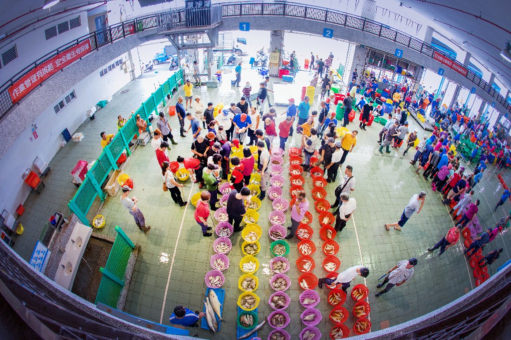 ↑圖說:梓官蚵子寮魚市場每日定時有糶手漁貨拍賣,吸引人潮採買新鮮魚貨。(圖片來源:高雄市觀光局提供)