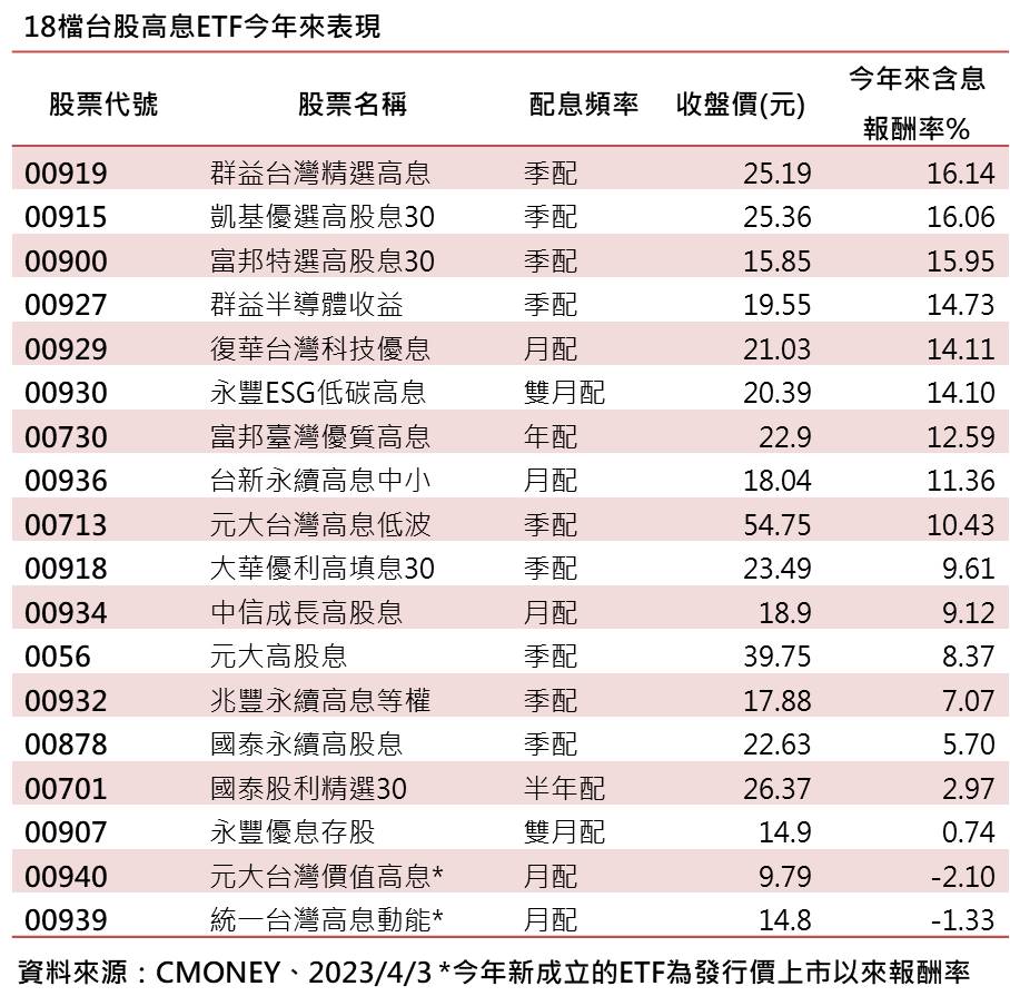 00919今年來上漲16%!姊妹作00946將開募 18檔高息ETF績效一表秒懂