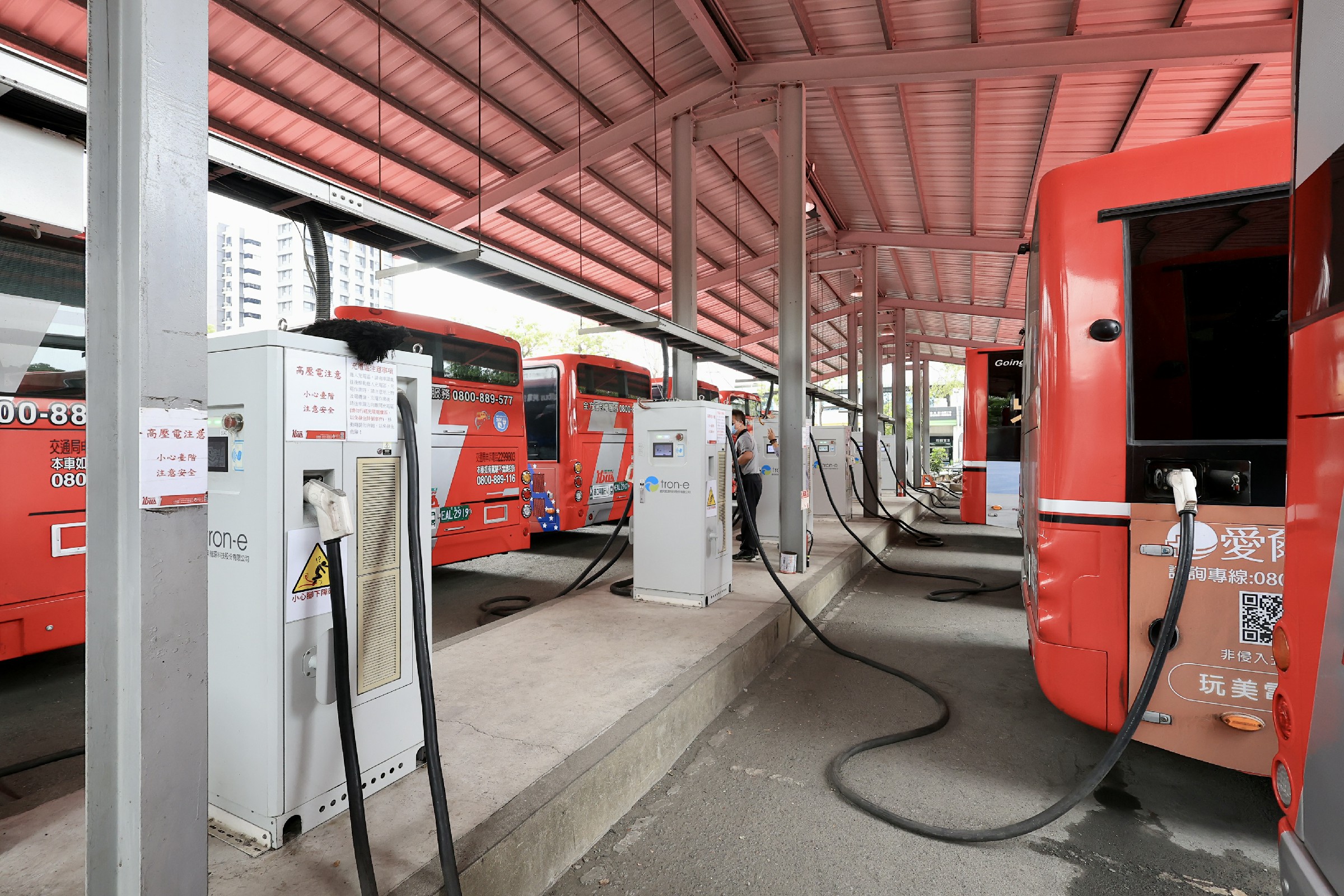 ↑圖說:陳其邁參觀電動公車及其充電設施(圖片來源:高雄市政府提供)
