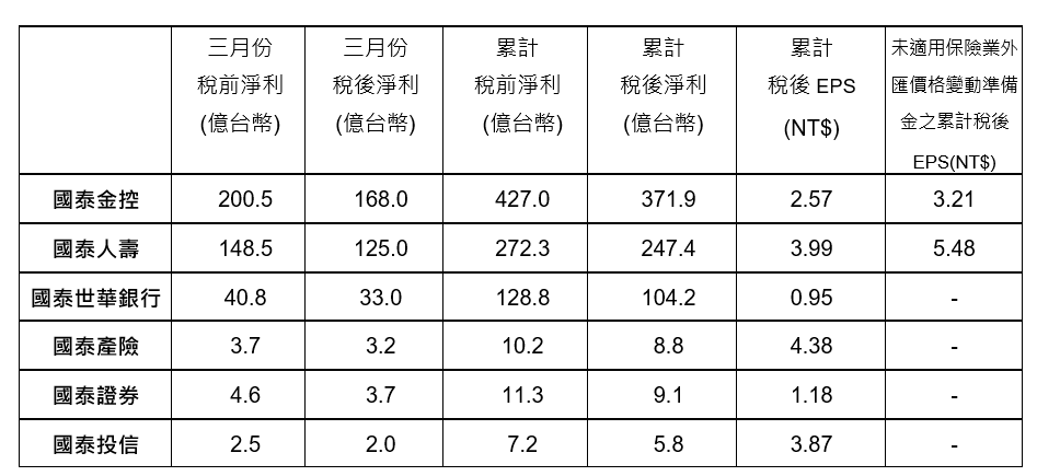 3月稅後淨利4.61億元,累計稅後淨利13.48億元,主要來自穩健的承保業務表現和優異的投資績效。