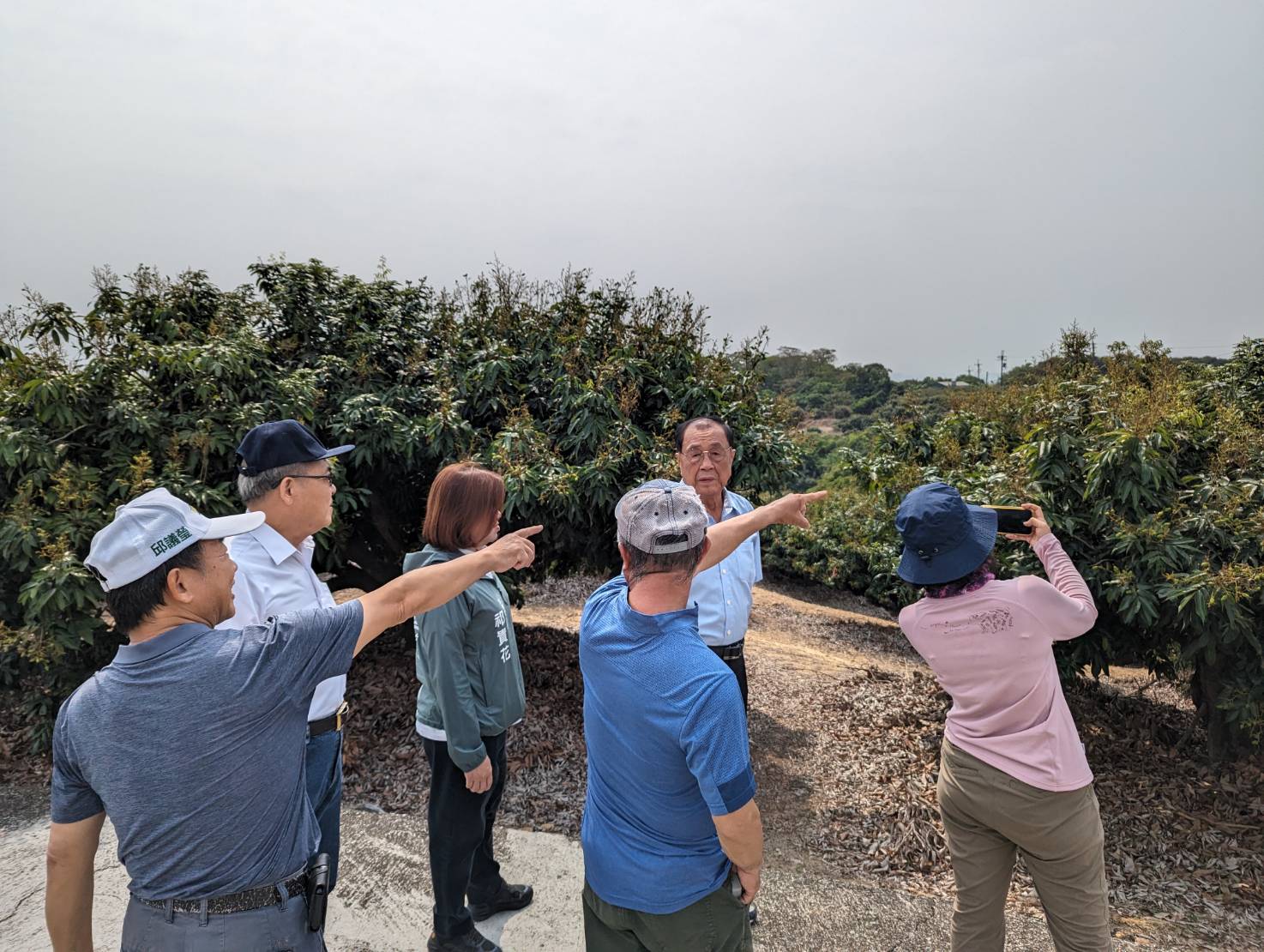 今年初氣候變化大,雖有幾波低溫促進果樹開花,但不及持續高溫乾旱影響,導致果樹開花結果不易,目前包含玉荷包及黑葉荔枝、龍眼、青梅及那瑪夏區的水蜜桃紛紛傳出災情。高雄市農業局長張清榮與大樹區農會歐幸娟總幹事、旗山區農會方介佐總幹事前往產地關心荔枝產業,與農友瞭解受災情形。