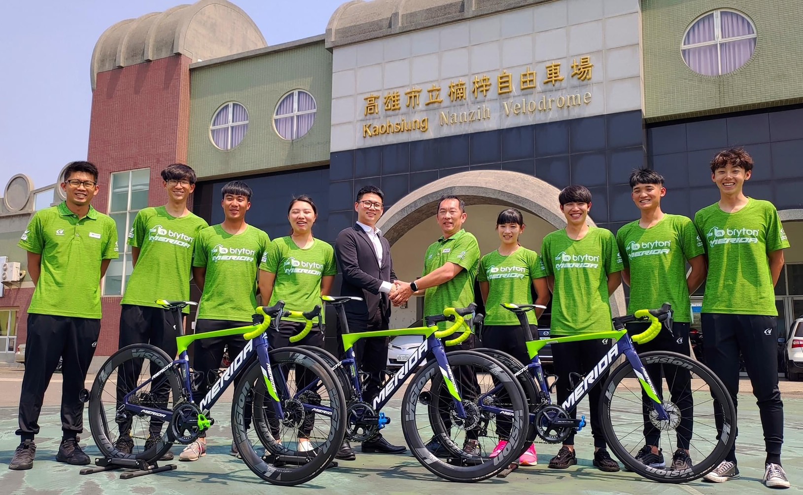 ↑圖說:劉柱均(左五)冠名贊助在地自由車隊。(圖片來源:阜冠國際開發提供)