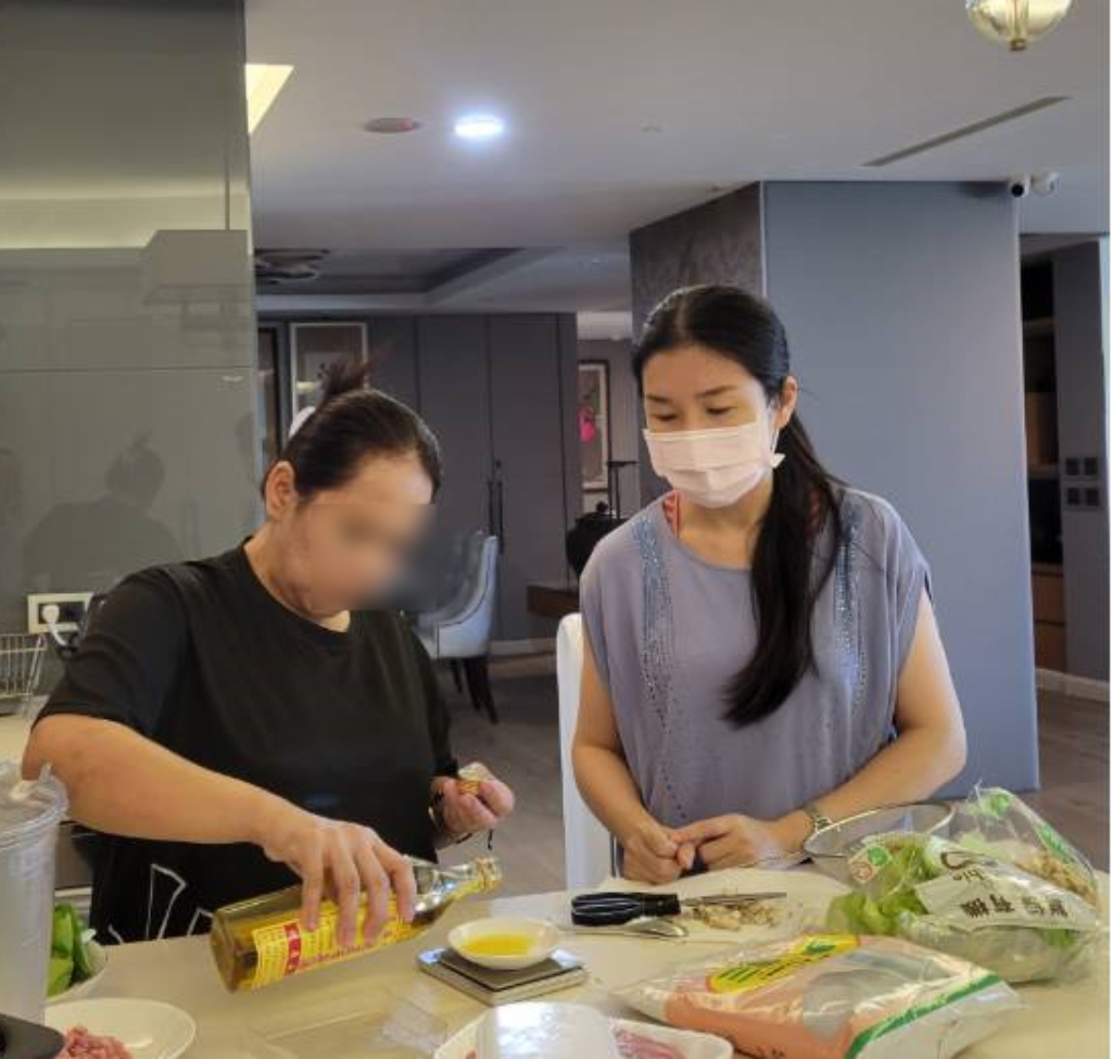 ↑圖說:營養師到宅評估失能者活動狀況、疾病、體型、體重等,獲取應有之熱量、營養及水份,指導外籍看護工提供適合個案質地及養分需求的飲食(圖片來源:高雄市衛生局提供)