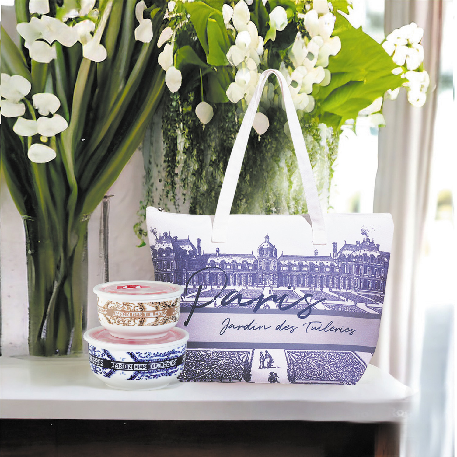 漢來百貨表示,受消費者喜愛的卡友來店禮,今年也特別獲得法國國家博物館聯合會正版授權,融入法國巴黎杜樂麗花園圖素,推出全台獨家藝術授權贈品,4/18(四)-4/21(日)浪漫日常手提袋及5/9(四)-5/12(日)藝術饗宴二入碗,兼具藝術及質感。此外,當日持同一漢神Plus APP會員集點並於全館消費累積滿2千元即可參加「法式生活總抽獎」,有機會抽中台北漢來大飯店、精品燒肉老乾杯套餐及時尚小家電等好禮;消費滿額集滿指定星星數還可免費兌換「法式優雅集星樂」智能家電及食尚餐飲。