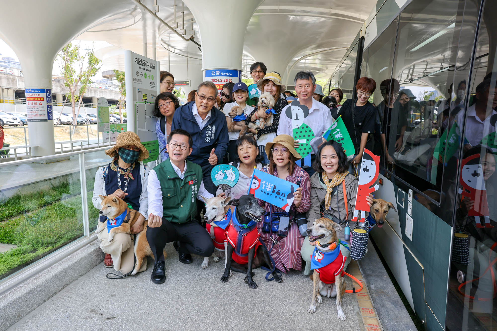 ↑圖說:毛孩體驗搭乘輕軌(圖片來源:高雄市農業局提供)