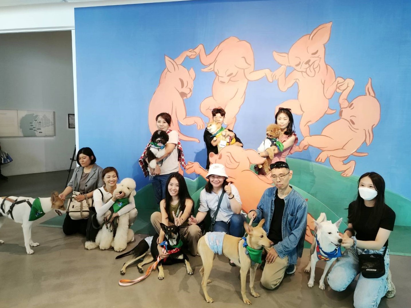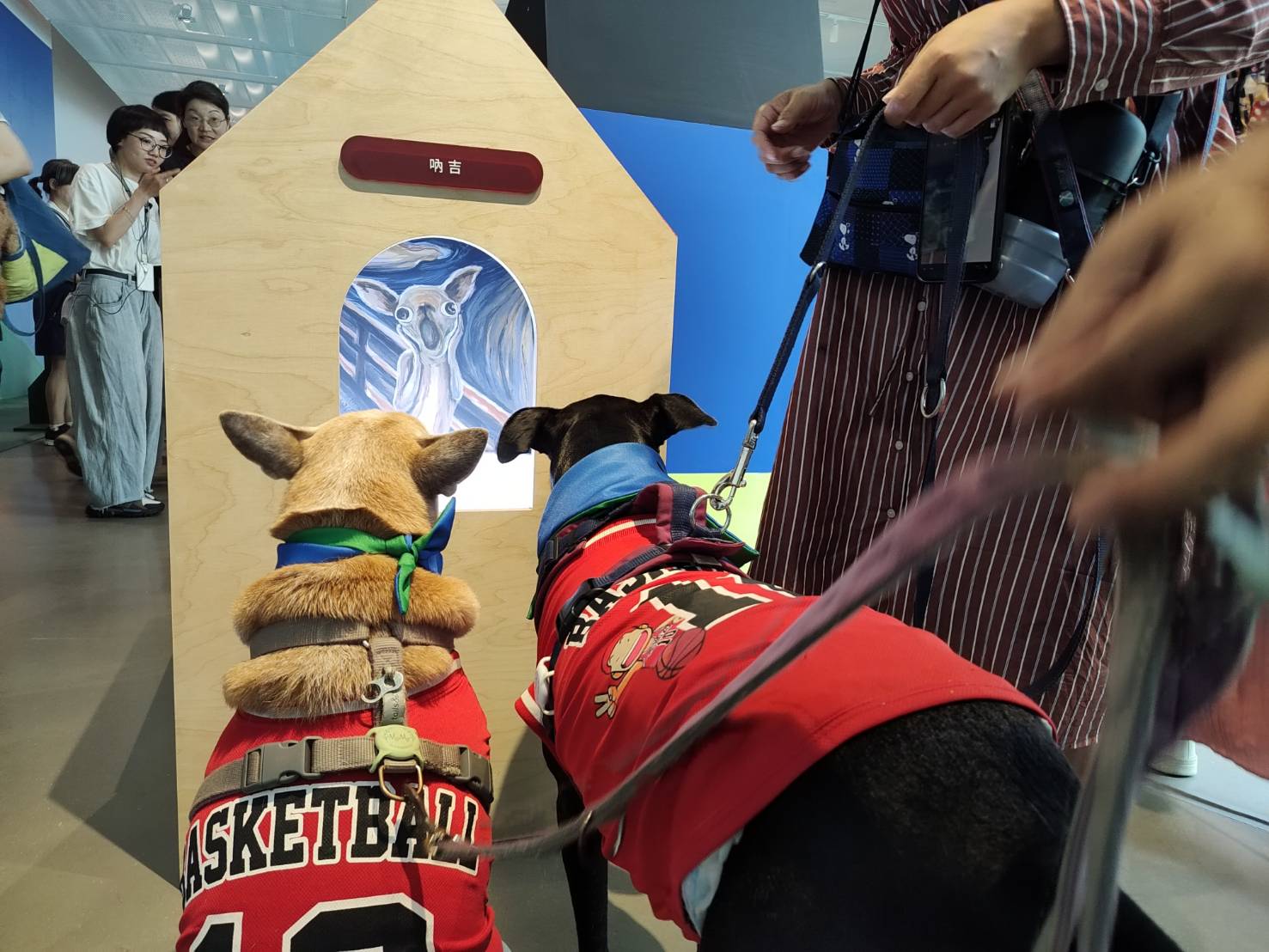 ↑圖說:毛孩們進入內惟藝術中心欣賞藝文展覽。(圖片來源:高雄市農業局提供)