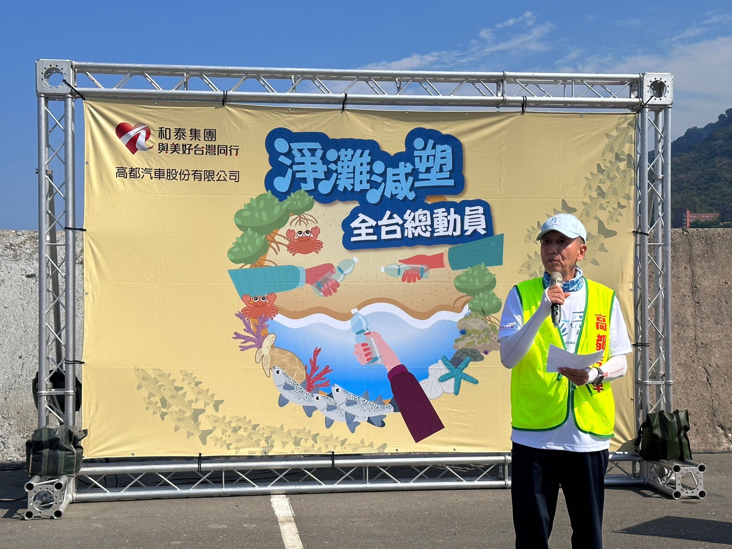 TOYOTA高都汽車公司董事長余榮輝表示,和泰TOYOTA集團自2019年以來,已經舉辦了140個國小環保減塑教育和65場的淨灘活動,總共清除51.5噸垃圾,這五年來參與的民眾已累積超過兩萬人次。