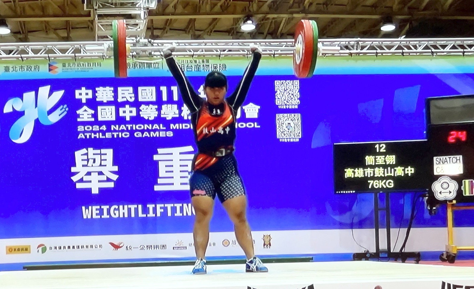 這次全中運舉重比賽,鼓山高中國中部簡至翎是從81公斤級降體重,參加76公斤級的比賽。過去抓舉她個人最佳成績有74公斤;但這次她抓舉成績只有63公斤,還好挺舉以破大會紀錄的91公斤,最後以總和154公斤奪得金牌。