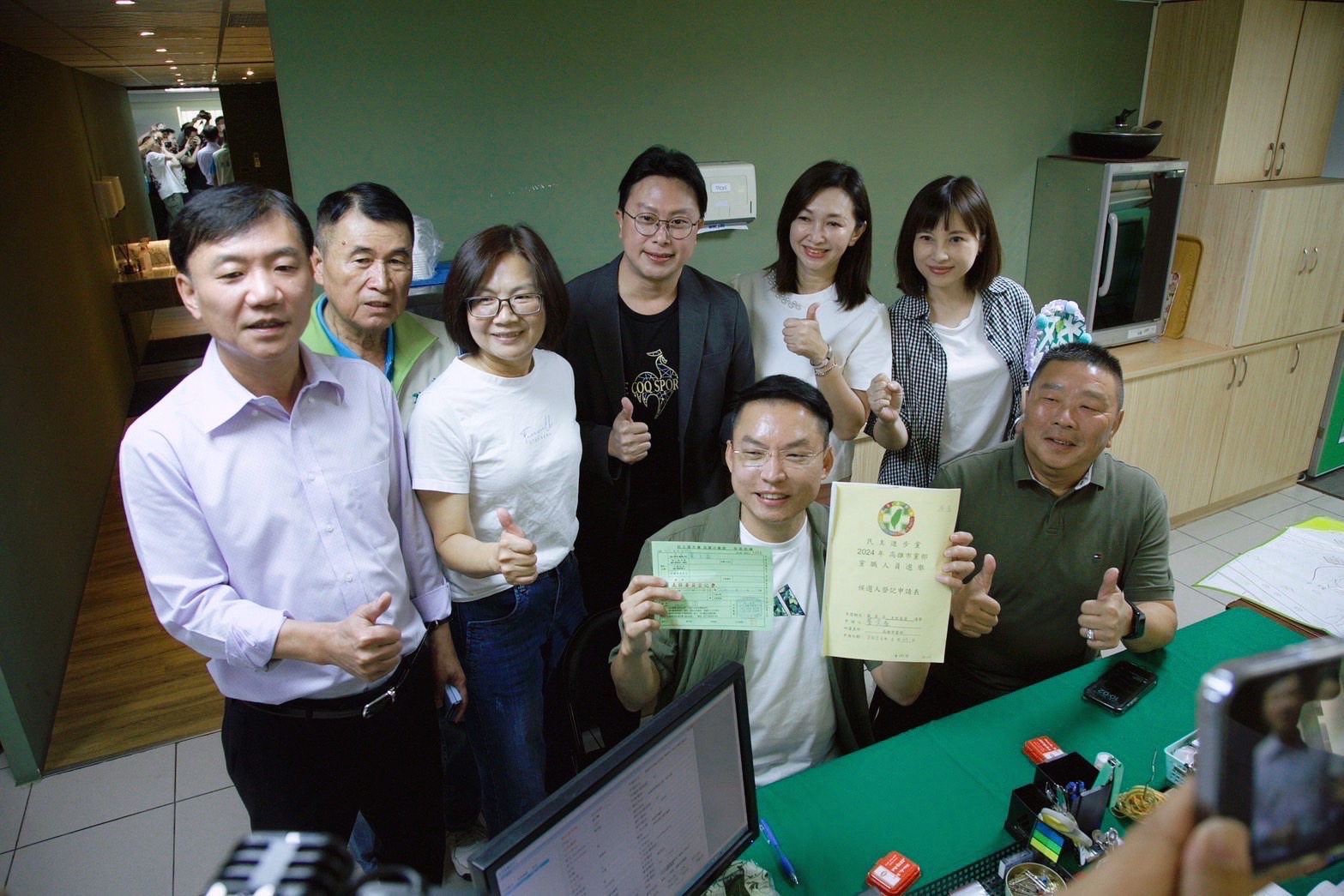 ↑圖說:黃文益(前排左)在議員陪同下完成登記。(圖片來源:湧言會提供)