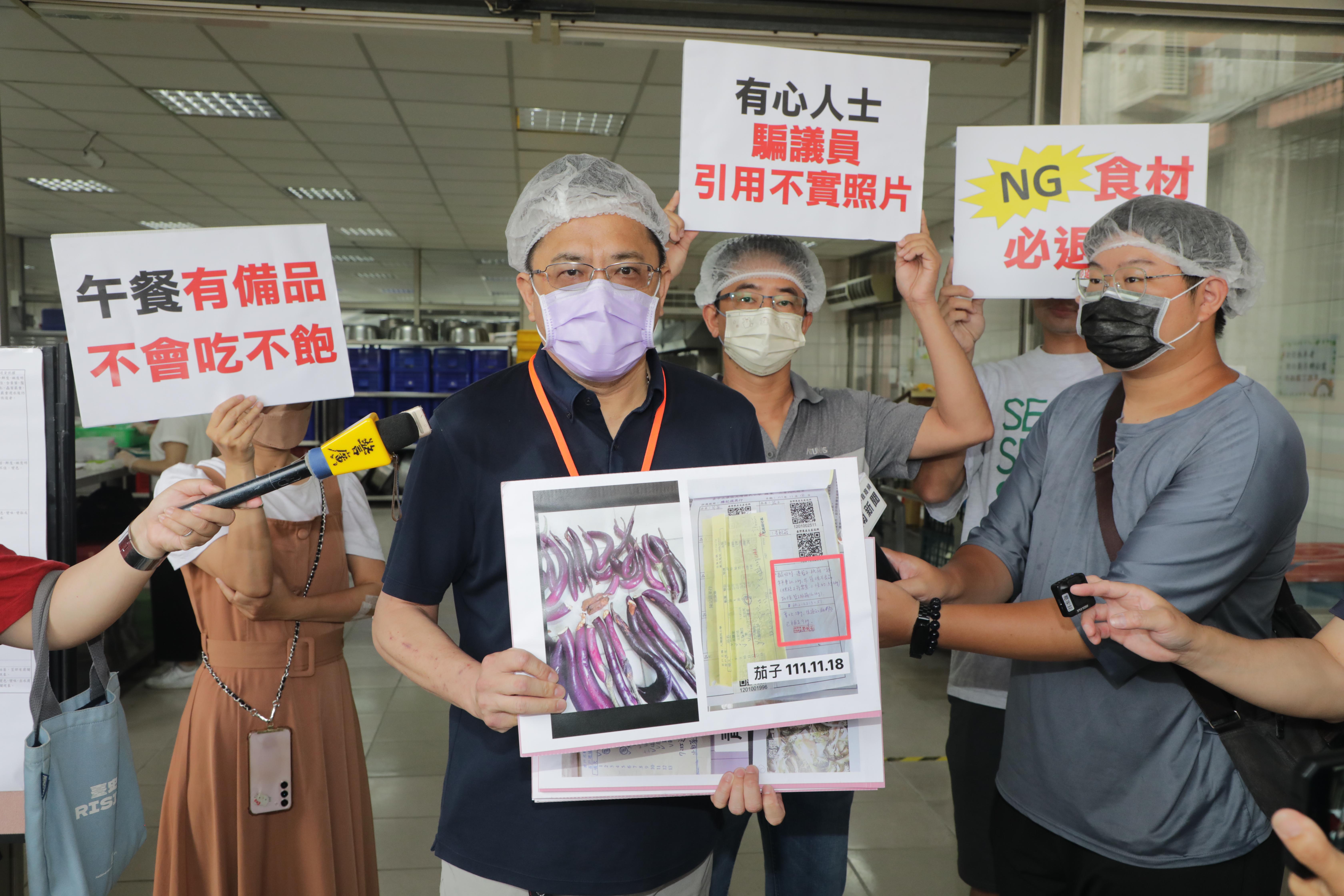 台南市議員林燕祝日前在議會質詢時,爆料台南多所學校使用不肖供應商所進的「爛菜」食材烹飪營養午餐,而背後疑為涉有槍擊案的家長會長為廠商撐腰,林燕祝要求市府盡速徹查。台南市府教育局今日召開記者會,除公開說明午餐食材驗貨流程,並強調市府絕不容許外力脅迫。市府表示,本案已由政風介入調查,如有不法市府將向檢調告發。而大灣國小校長陳建銘今日也出面說明,他指議員出示的劣質食材照片,全都是學校驗收退貨拍照存證的照片,有2022年的,也有今年的,並沒有提供給學生食用。