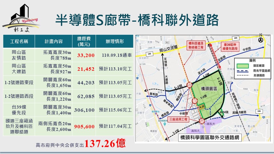產業發展 交通先行 橋科及楠梓產業園區交通路網持續建設