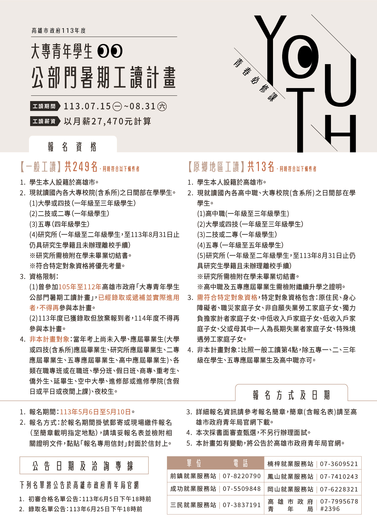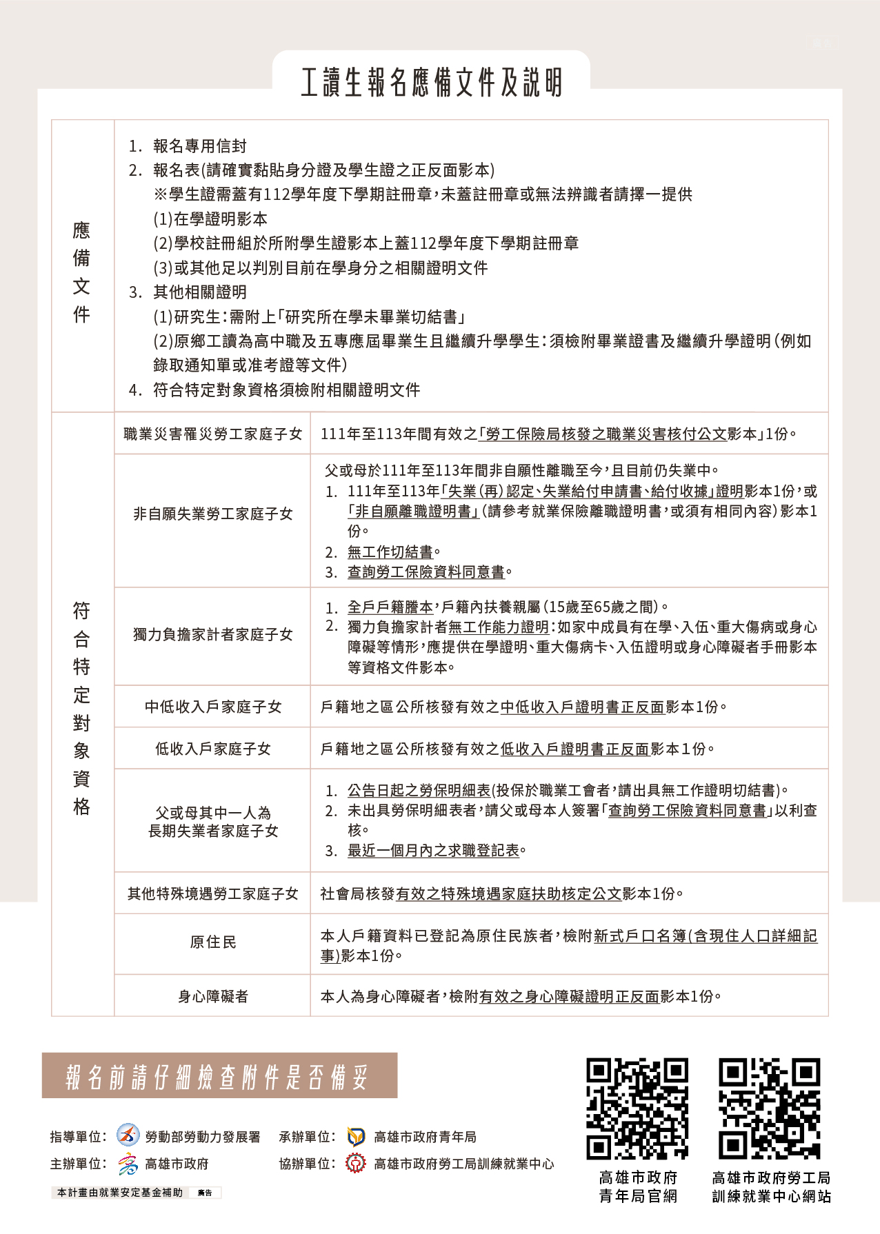 ↑圖說:高市府暑期工讀報名自即日起至113年5月10日止。(圖片來源:高雄市青年局提供)