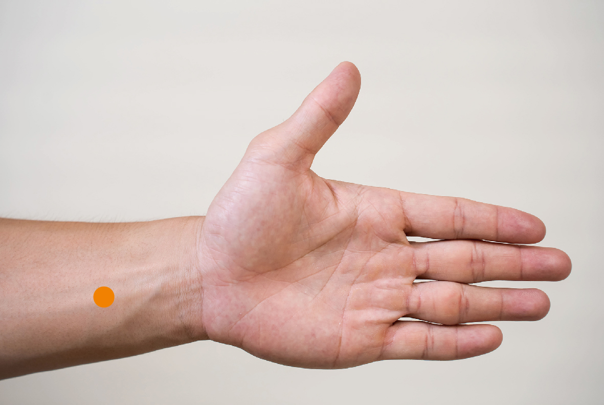 ↑圖說:按摩「内關穴」可以舒緩腸胃不適的症狀(圖片來源:馬光中醫提供)