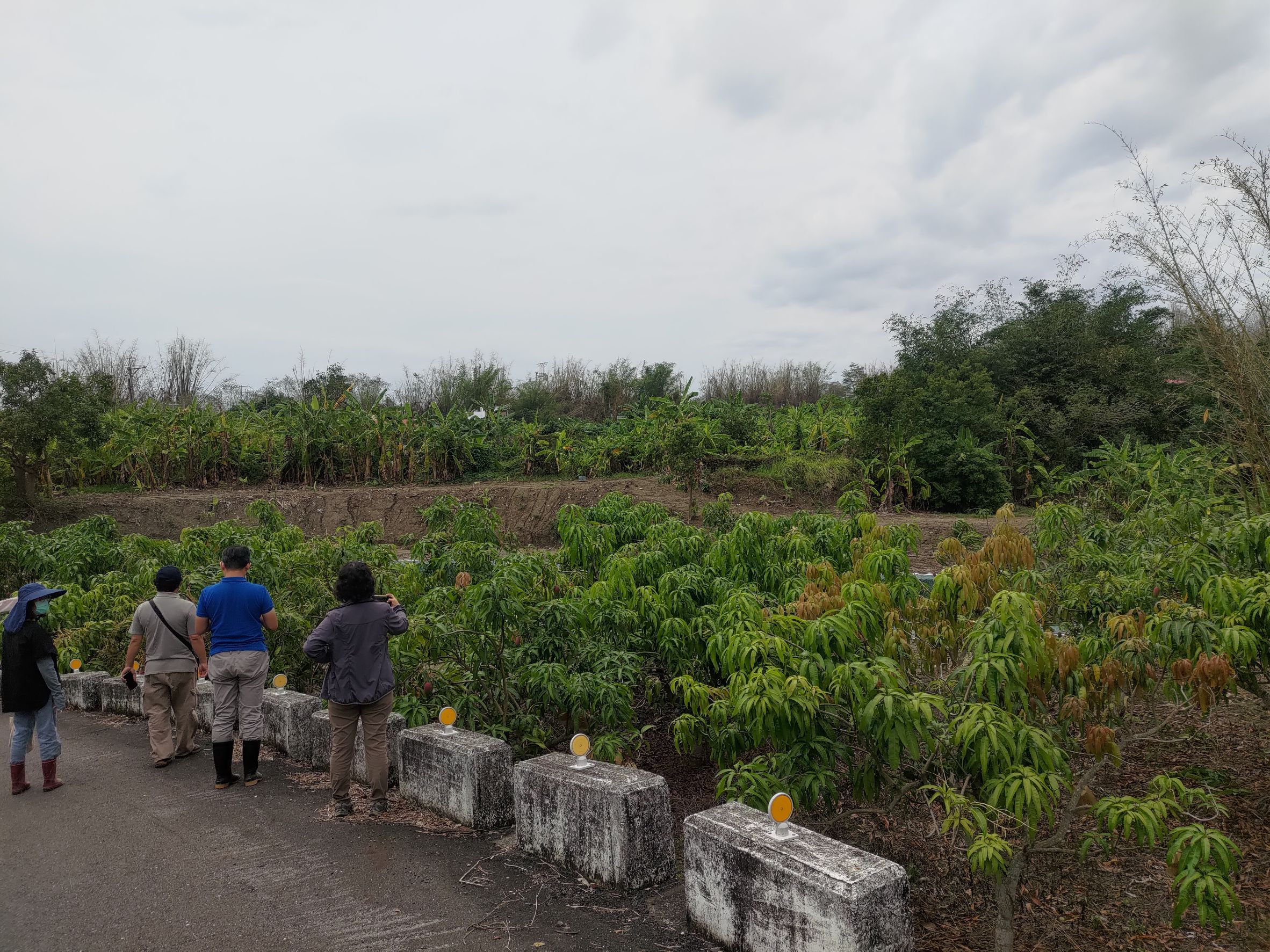 ↑圖說:農業局邀集高雄區農業改良場、農糧署與區公所確認災損情形(圖片來源:高雄市農業局提供)