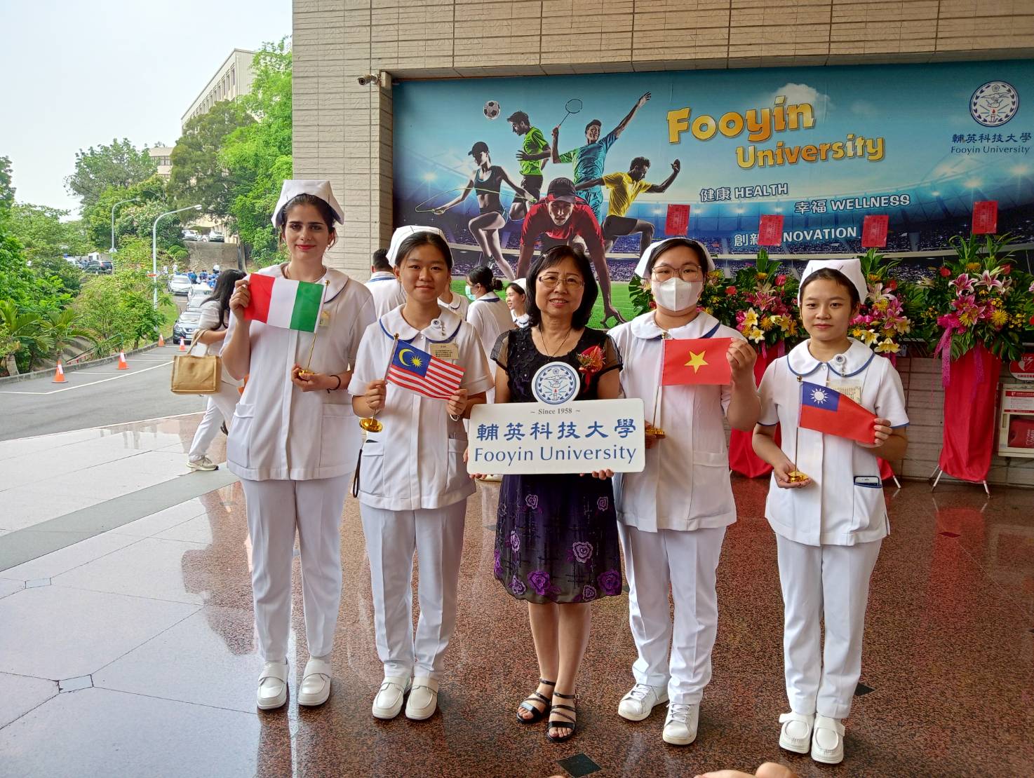 ↑圖說:林惠賢(中)與不同國籍學生合影。(圖片來源:輔英科大提供)