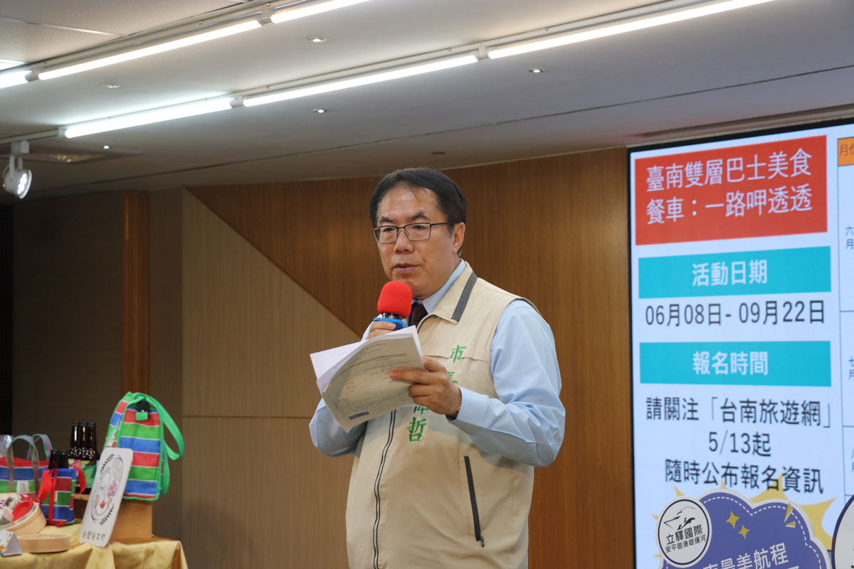 ↑圖說:市長黃偉哲介紹台南盲盒遊程(圖片來源:記者謝欣澤拍攝)