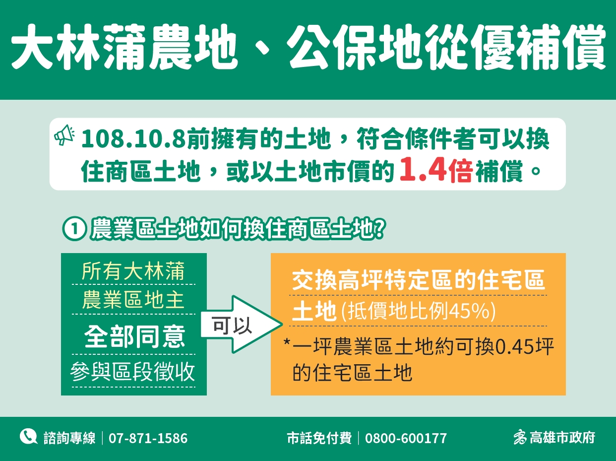 ↑圖說:高市府對大林蒲農地與公保地從優補償。(圖片來源:高雄市都發局提供)