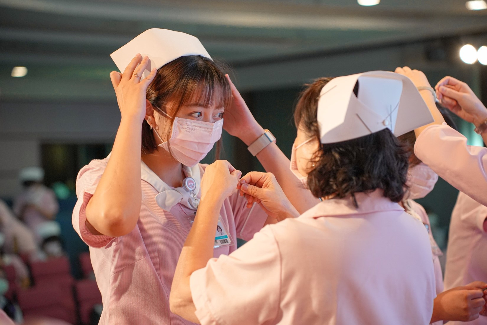 典禮上由老師親手為「護理學系」、「護理學系原住民專班」以及「學士後護理學系」等130位學生戴上護師帽及聽診器,秉持南丁格爾精神,成為點亮病人在面對困境時的明燈。學生手拿閃爍的燭光燈,全體合唱《我還沒有做好被打倒的準備》和《天空沒有極限》等歌曲,致敬每一位醫療人員。
