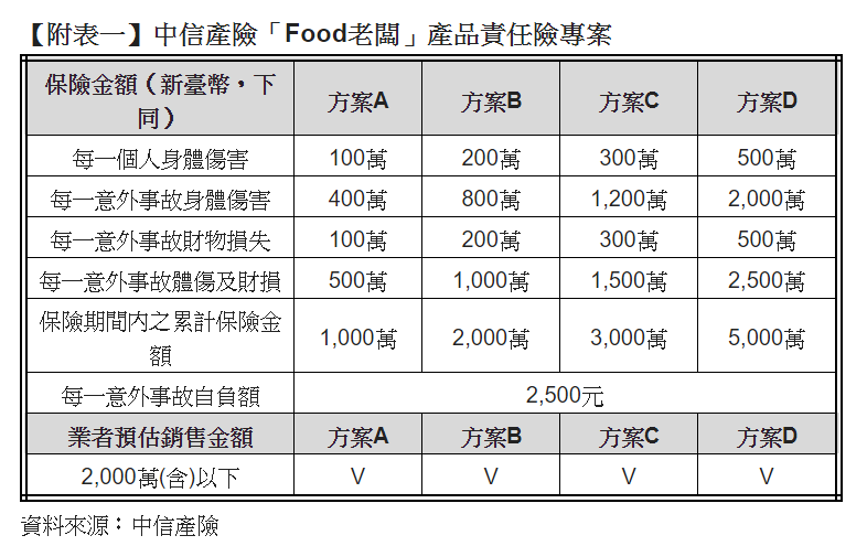 產品責任險5月起強制登錄 中信產險推「FOOD老闆」責任險!