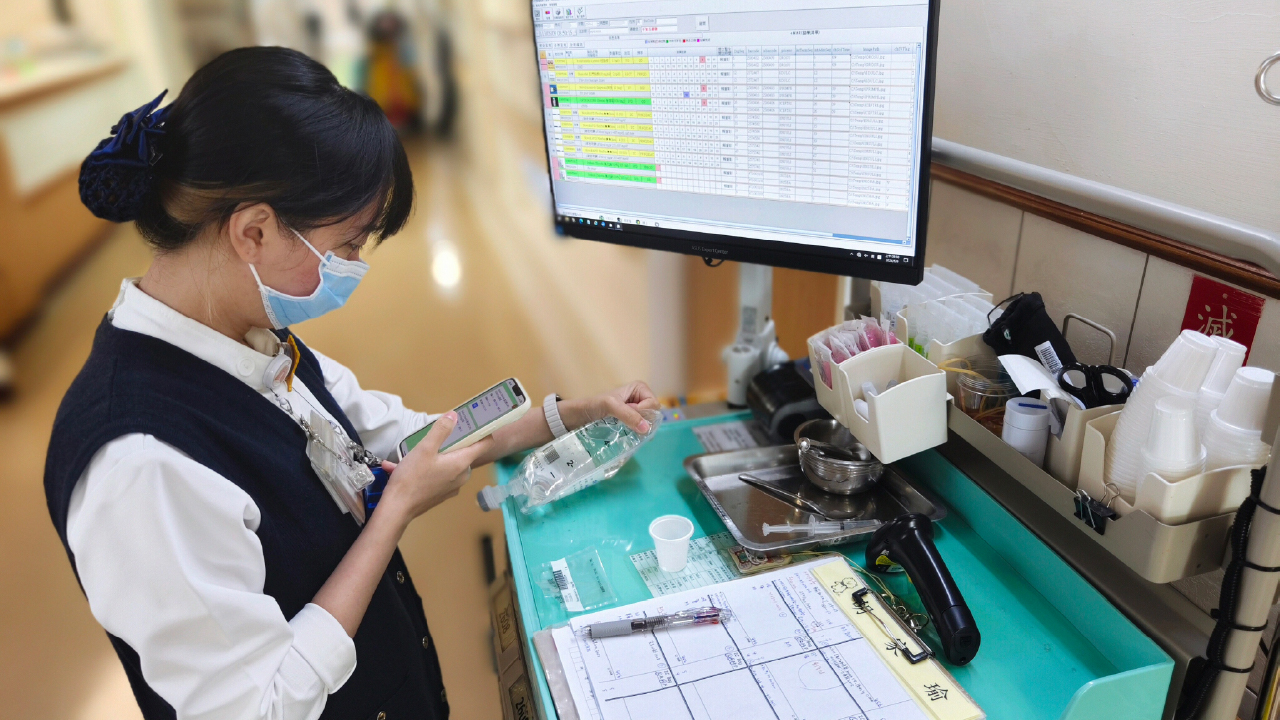 現行使用半行動化護理行動工作車,掃描Barcode條碼給藥系統為基礎,值得一提,《行動護理APP》開發新的「行動給藥」功能,將給藥系統全面提升為「全」行動化,不受空間限制也可給藥,突破了病室空間狹窄,導致行動工作車無法推至床邊的限制,大大補足給藥安全的風險缺口。