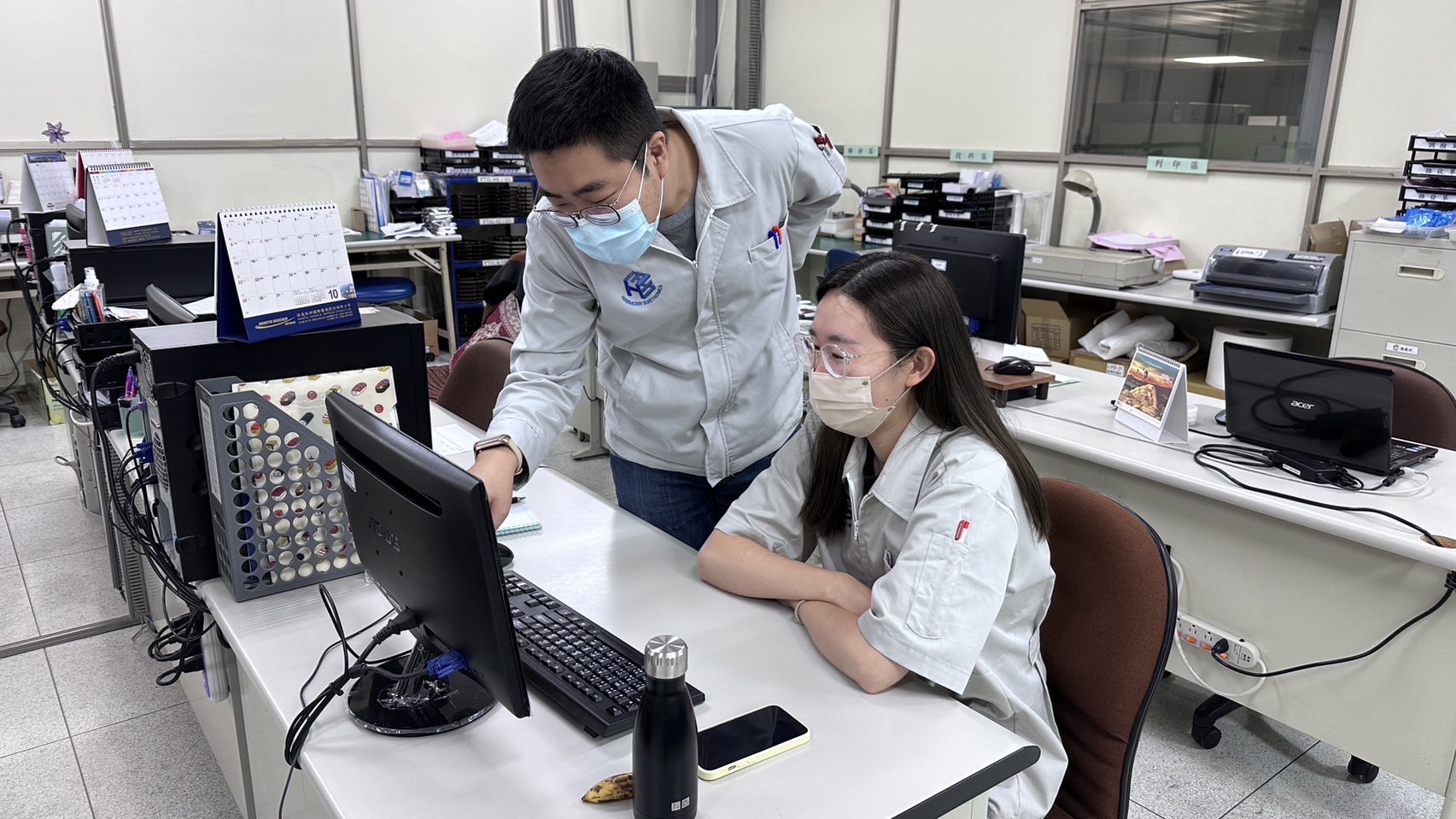 ↑圖說:實習企業加高電子提供實習實務訓練,由主管帶領實習生,提供經驗傳承,實習生備受肯定,實習後留任轉為正職。(圖片來源:高雄市青年局提供)