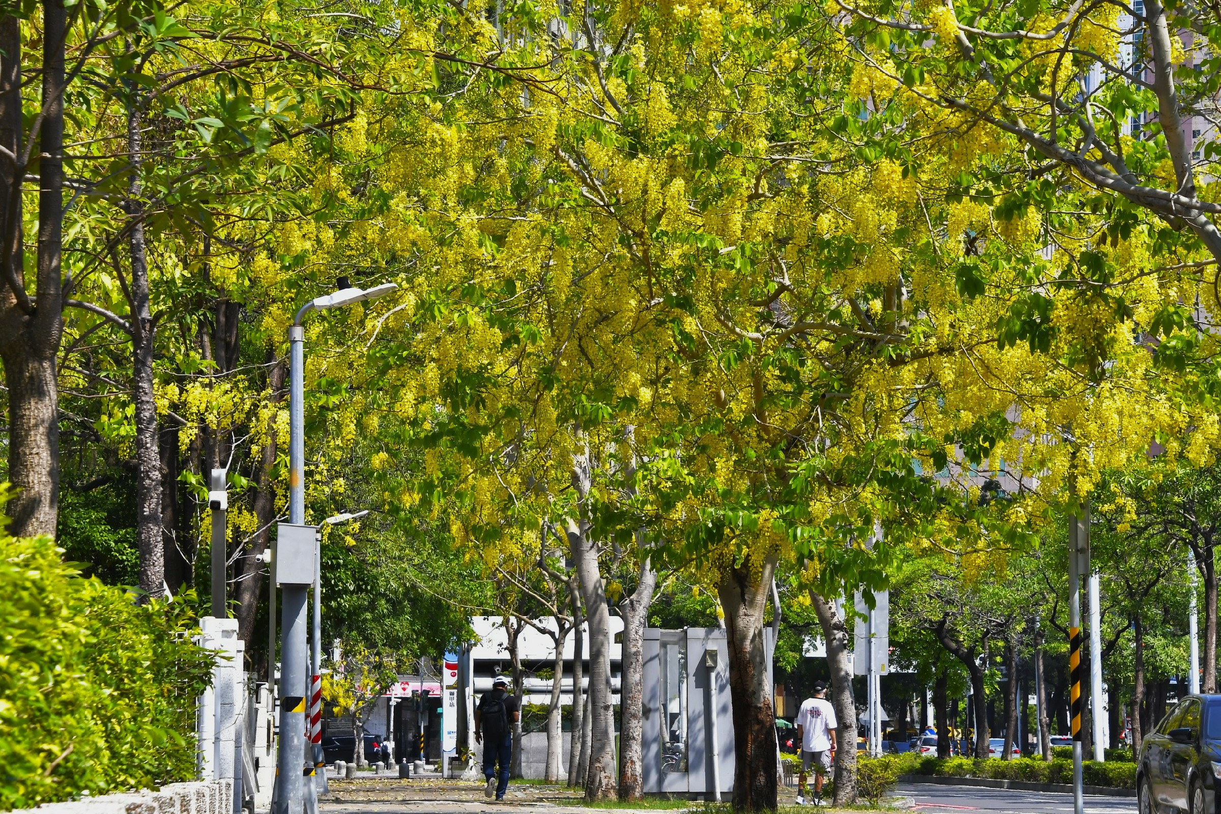 初夏阿勃勒綻放街頭 黃金雨點綴港都市容