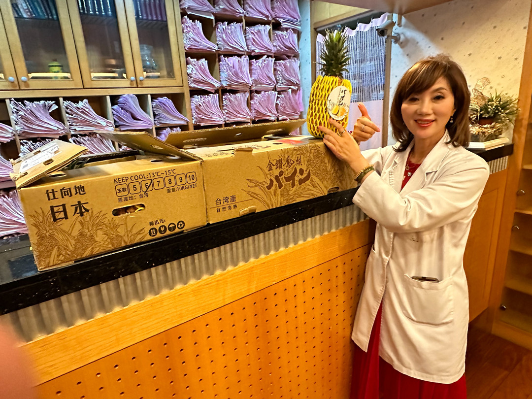 ↑圖說:中醫師吳明珠買300箱金鑽鳳梨分送親友 (圖片來源:吳明珠提供)