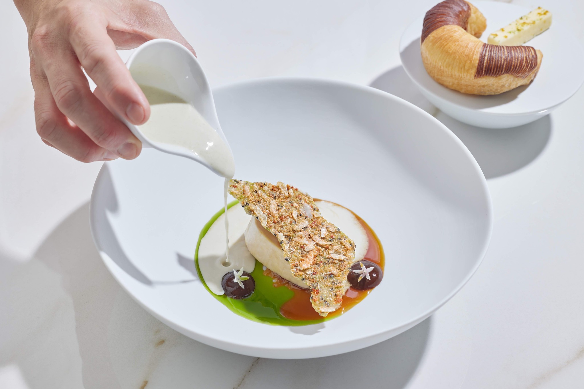 ↑圖說:「AW Restaurant秋・現代法餐」以臺法混血的精湛料理手法,結合自然美學的觀念,呈現季節食材的豐富風味,入選2024米其林餐廳指南。(圖片來源:S・S・A・W 四季餐廳)