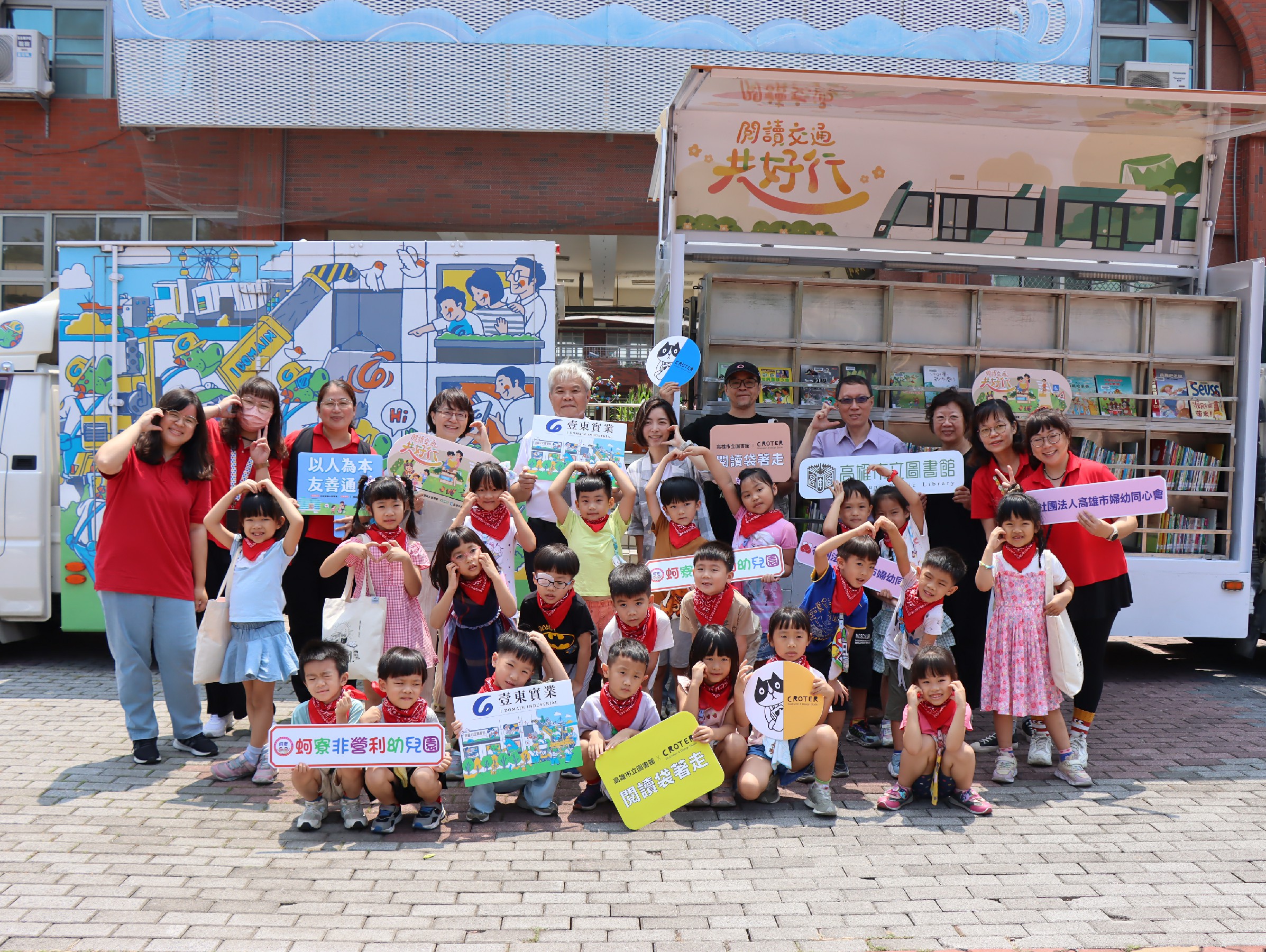 壹東實業董事長陳宗仁看到這部專屬人本交通的行動書車搭配故事劇團,在蚵寮非營利幼稚園宣導以人為本的道安觀念,帶領小朋友在遊戲中學習交通知識,趣味中落實環境教育。該公司的企業標誌此次與高雄知名繪本作家Croter在書袋中聯名,這也是延續雙方繼書車彩繪後再次的聯手,再再表達出壹東實業關懷偏鄉弱勢、注重藝文教育的企業文化。