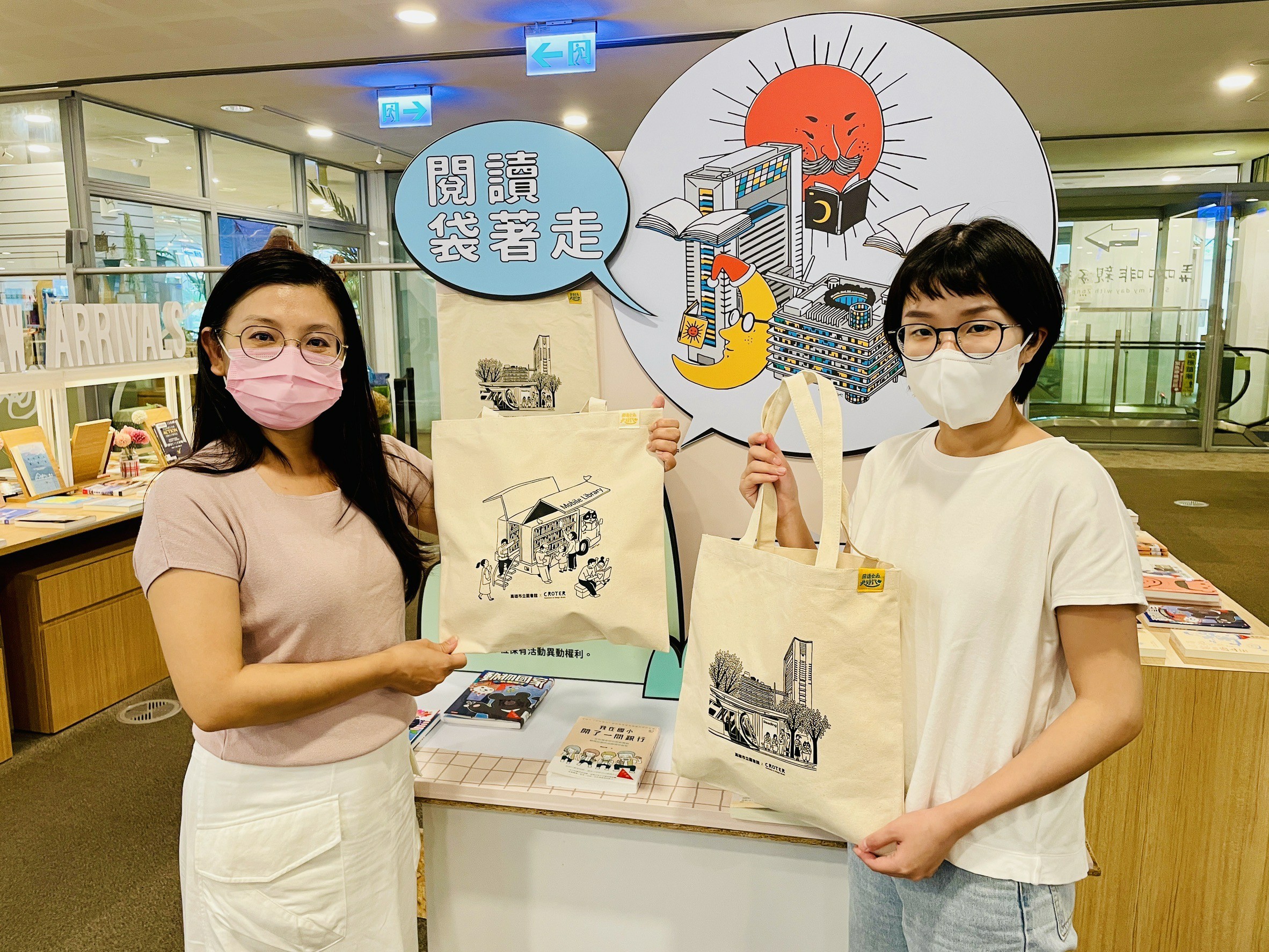 ↑圖說:2024全新3款閱讀提袋,由高雄在地知名插畫家Croter繪製(圖片來源:高雄市立圖書館提供)