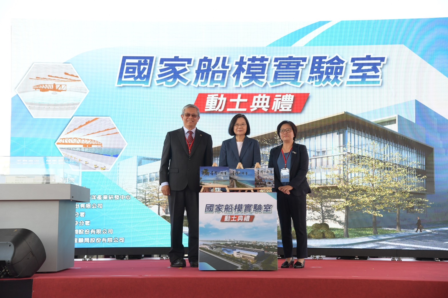 「國家船模實驗室」16日在高雄興達港舉行動土典禮,由總統蔡英文親自主持,海洋委員會常務副主任委員吳美紅、高雄市副市長羅達生、國家海洋研究院院長陳建宏、財團法人船舶暨海洋產業研發中心董事長邱逢琛,以及海洋產官學研界貴賓也出席參與一起見證了臺灣海洋產業的重大里程碑。