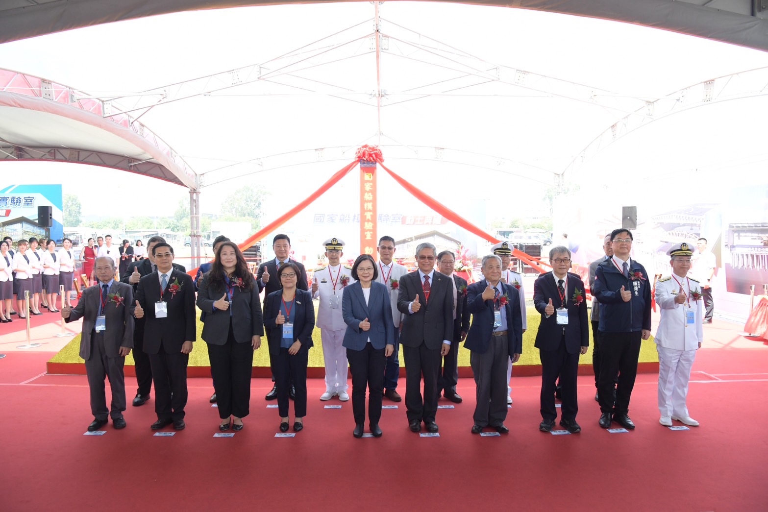 ↑圖說:蔡英文在致詞時指出,期盼透過「國艦國造」一起堅守台灣的民主、自由,也為國人打造一個更繁榮安全的國家(圖片來源:國家海洋研究院提供)