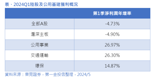 從企業獲利面來觀察,張帆強調,第一季中國企業整體淨利潤,仍然呈現衰退,整體A股的衰退幅度為4.73%,不過,公用事業見逆勢增長,第一季淨利潤年增率達26.9%,另外,像是交通運輸、環保等行業,分別有26.30%與14.87%的成長幅度。