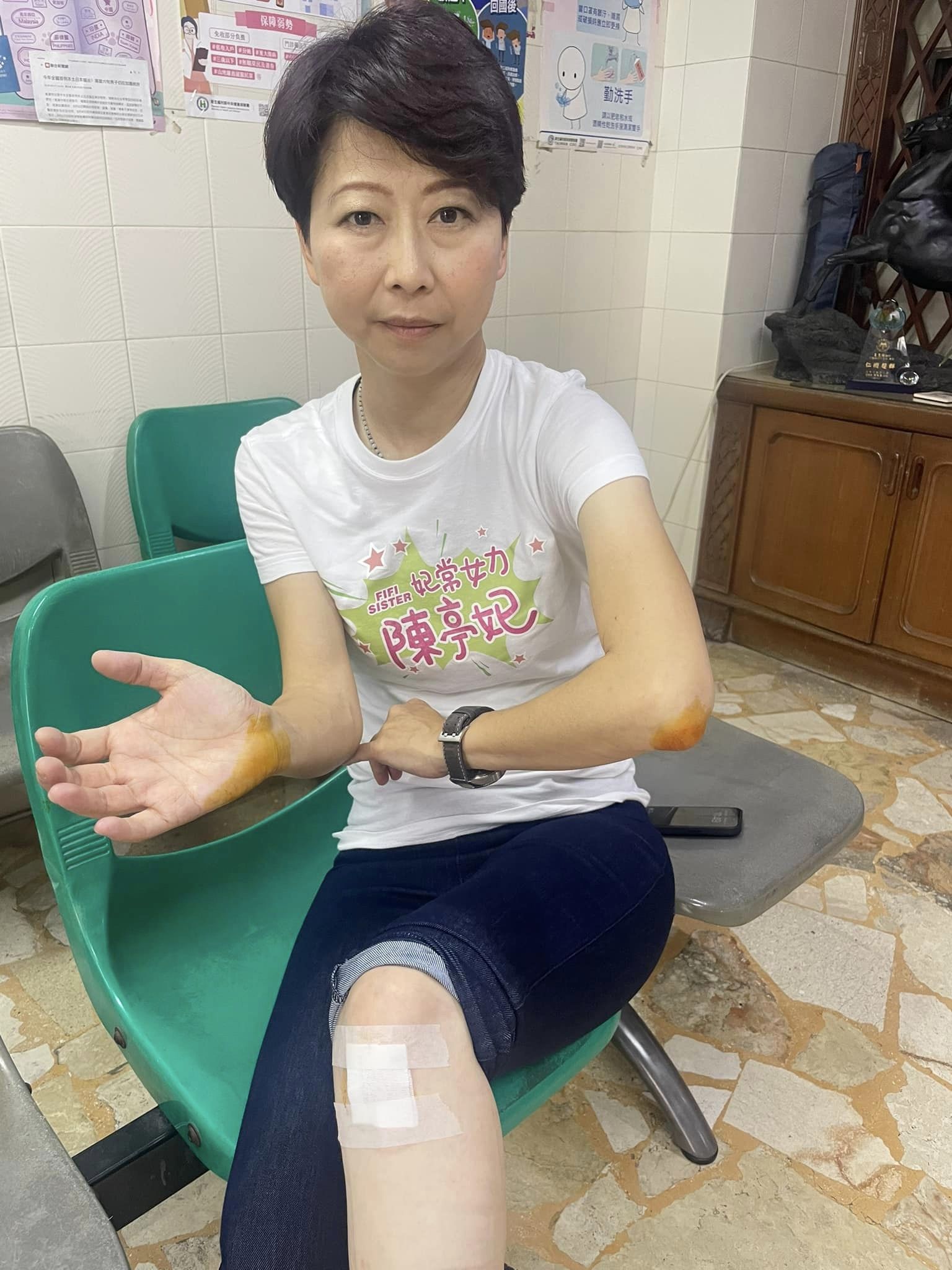 ↑圖說:立委陳亭妃遭徐巧芯踹倒受傷 (圖片來源:陳亭妃辦公室提供)