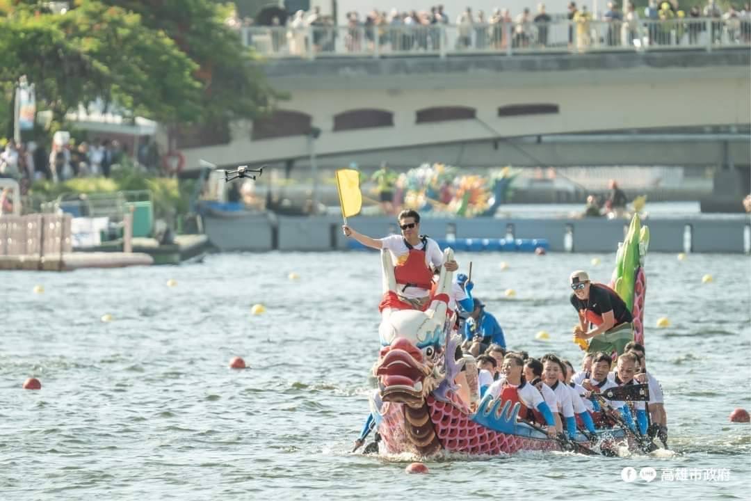 ↑圖說:今年高雄龍舟很國際,美國在台協會高雄分處、日本台灣交流協會高雄事務所、馬尼拉經濟文化辦事處等駐台機構皆將參賽,圖為去年市府隊以10秒之差領先奪勝。(圖片來源:高雄市運動發展局提供)
