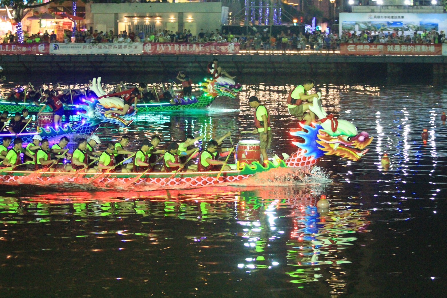 ↑圖說:睽違四年夜間龍舟回歸賽場,圖為2019高雄夜間龍舟賽事。(圖片來源:高雄市運動發展局提供)