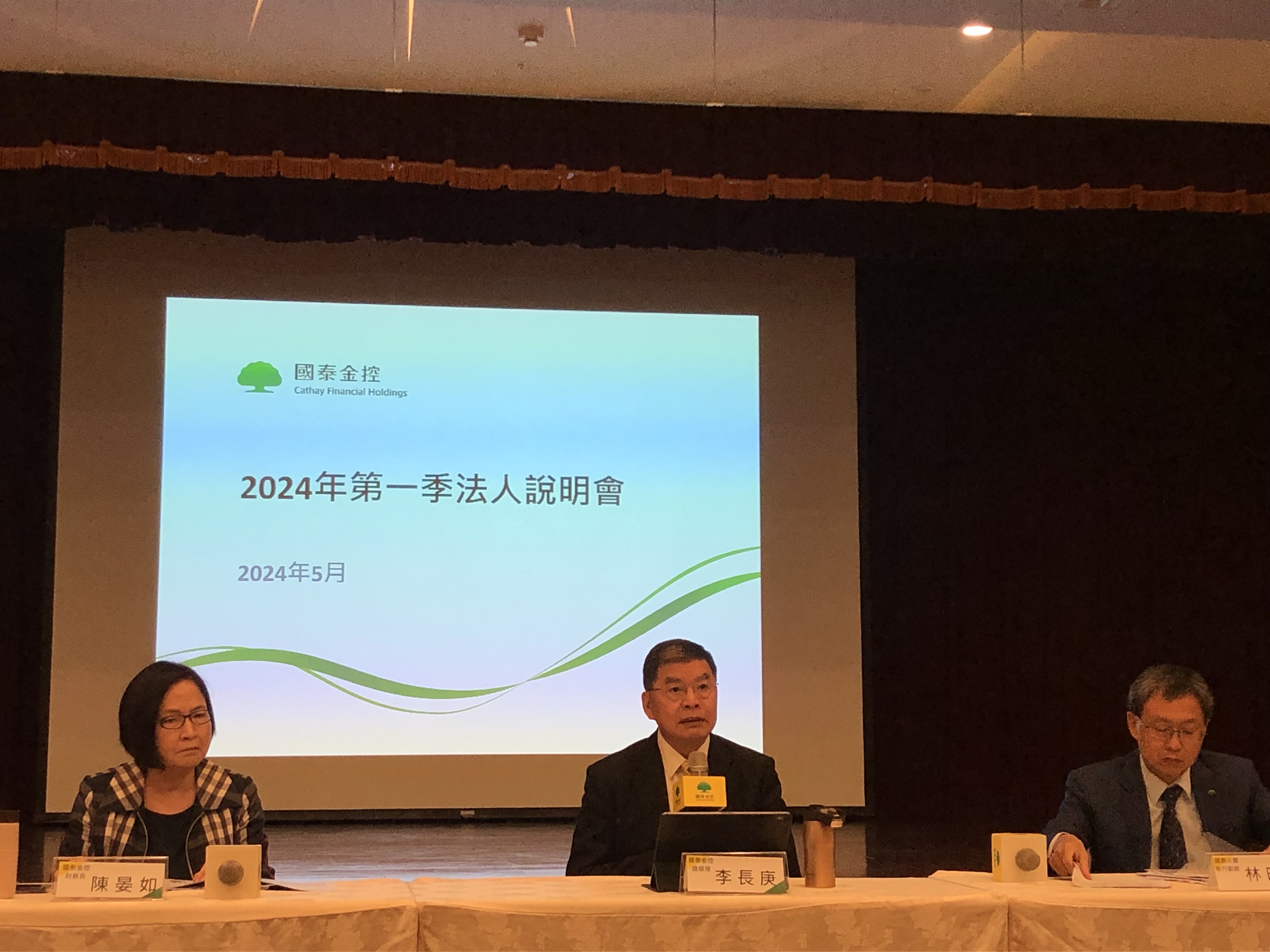 ▼圖說:國泰金總經理李長庚(圖中)、國壽執行副總林昭廷(圖右)、國泰金財務長陳晏如(圖左)。(圖/記者李錦奇攝影)