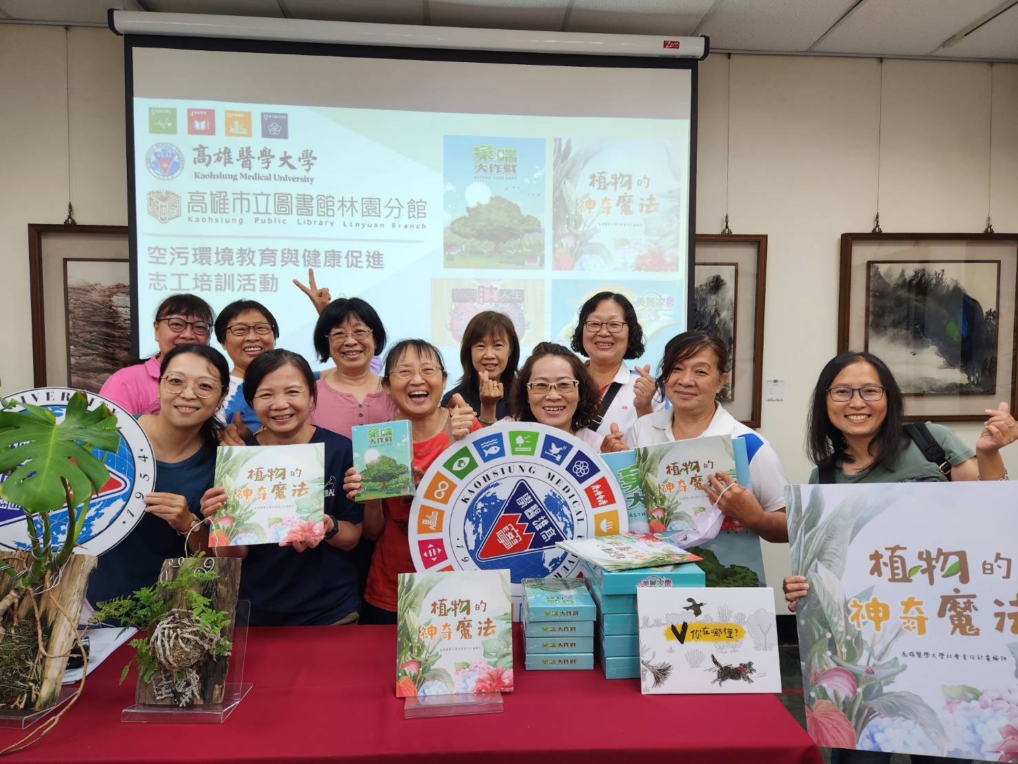 活動當天除了培訓課程外,高雄醫學大學也將USR計畫中由師生共創的衛教教材包括健康促進照護類桌遊「棄喘大作戰」、「解鎖肺人生」與空品環境教育類 「美麗家園」、「植物的神奇魔法」繪本等,分享致贈給林園圖書館。