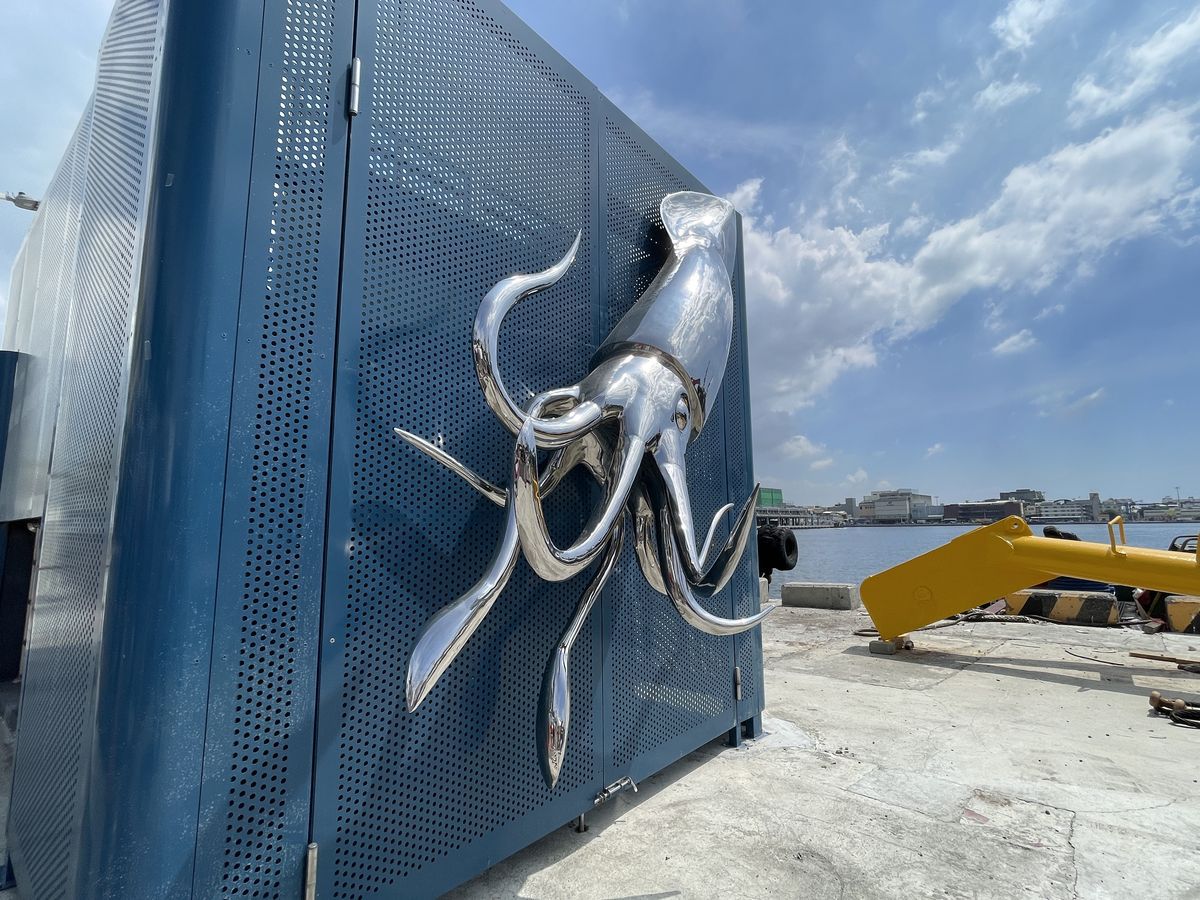 水利局表示,為朝向乾淨海面為目標前進,將定期清理閘門內垃圾,並於防汛期間增加清運頻率,降低箱涵內垃圾流入港區的機會,另為使前鎮漁港更添風采,施工團隊從簡約主義發想,由海洋元素藍色及白色節塊組成,採氟碳烤漆鋁沖孔板包覆閘門結構,用以解構原閘門形體,象徵無懼風雨的外牆。另採用前鎮漁港遠洋漁業代表水產做為主題,6座閘門主題分別為魷魚、鮪魚、雨傘旗魚、鰹魚、劍旗魚與秋刀魚,主題物件為全立面不銹鋼掛件,表面完成鏡面拋光,散發耀眼金屬光澤,構築在包板量體上,就像魚群躍動,未來搭配乾淨海面上的波光粼粼,使前鎮漁港更為增色。