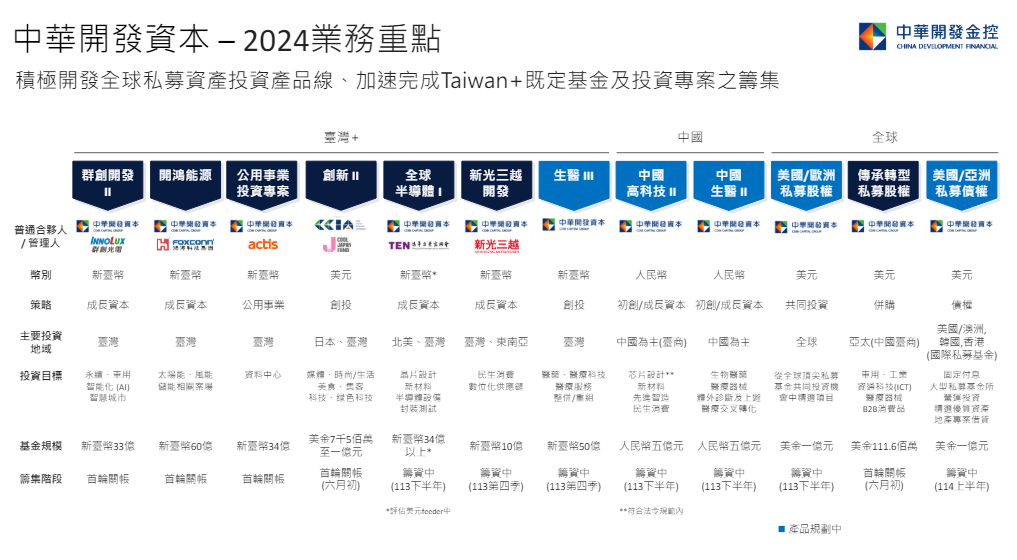 開發資本副董事長周之揚指出,開發資本過去10年(2013-2023年)注重資本管理的商業模式,發展14檔基金,在未來10年,希望不光是資產管理者,也希望在產品提供方面,給高資產客戶與上市公司提供更全面的資產服務,目前管理560億元資產,希望將來能擴大到2倍甚至3倍,穩定管理費收入。