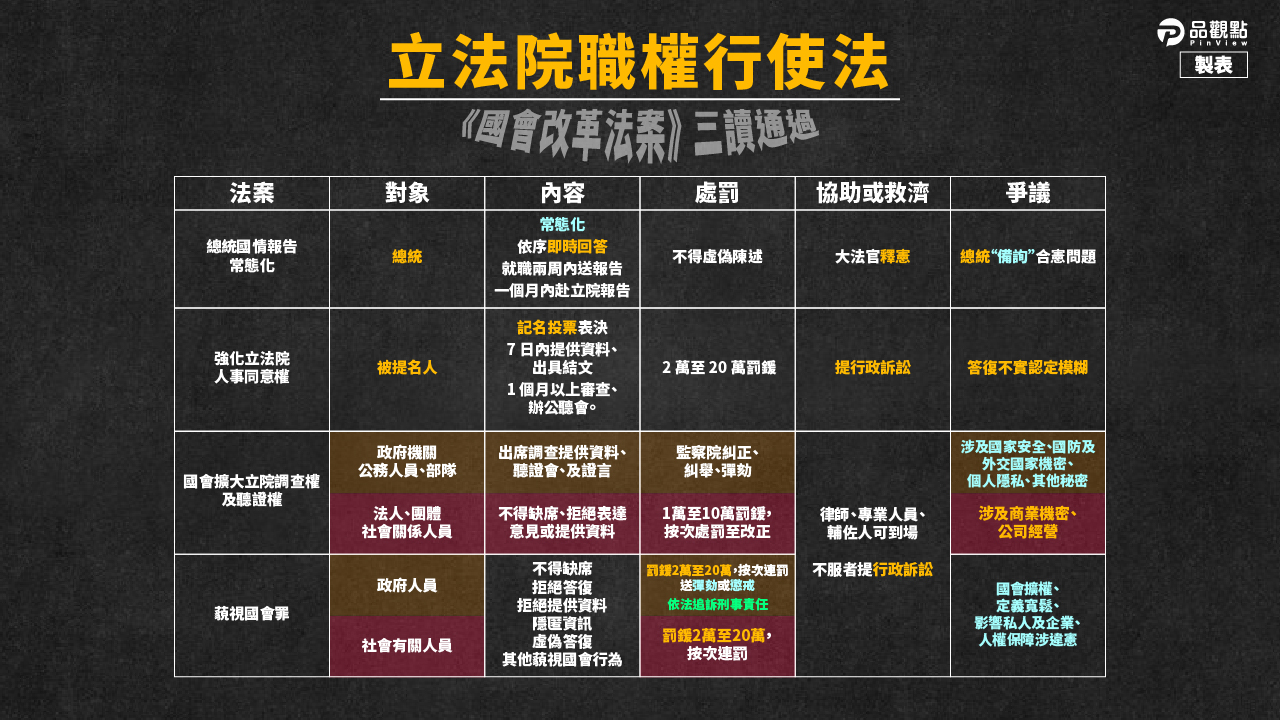 國會改革法案過三讀!《品觀點》懶人包內容一圖秒懂