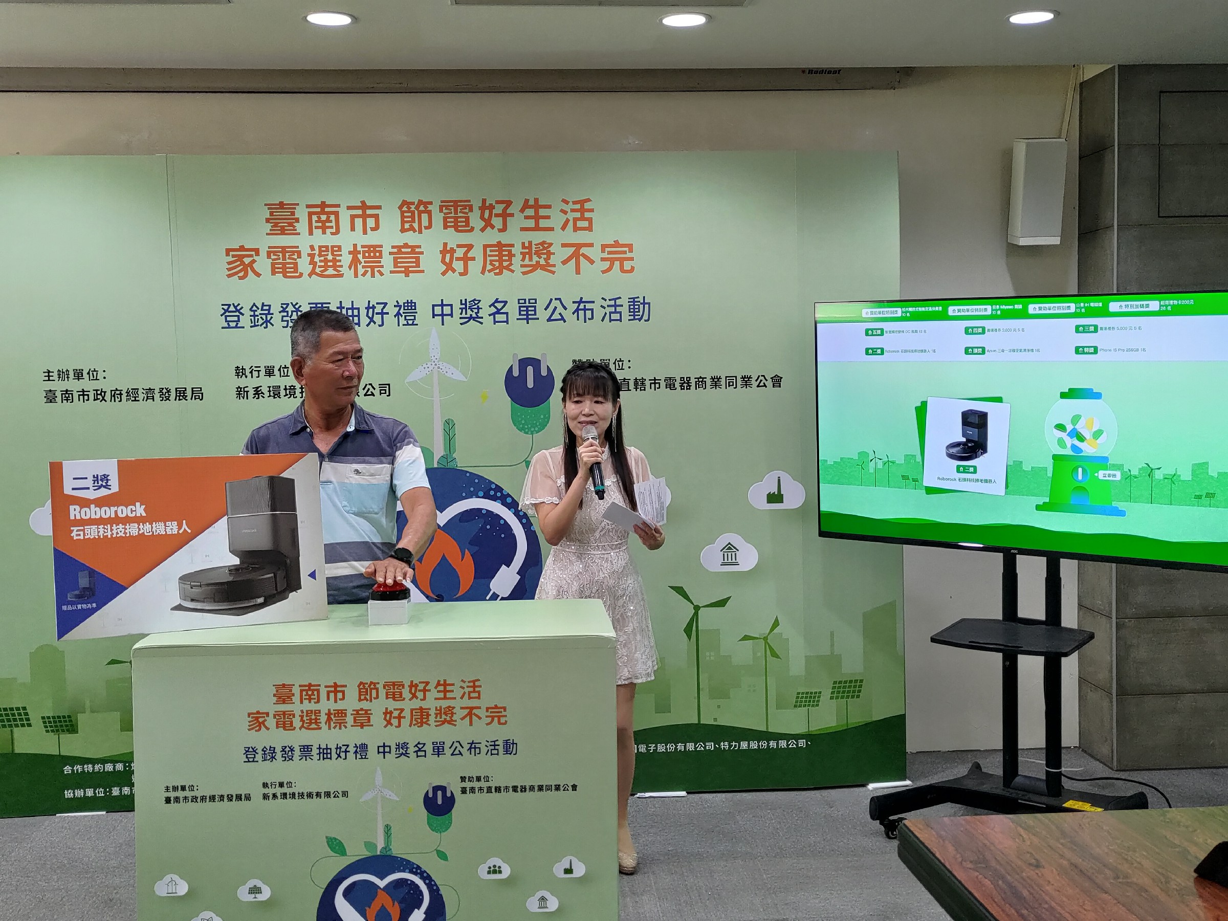 台南經發局為配合經濟部推動「住宅家電汰舊換新節能補助計畫」的節能補助,在3月1日至4月30日,推出『節電好生活 家電選標章 好康「獎」不完』發票登錄抽獎活動。經發局表示,此次活動獲得熱烈迴響,民眾登錄消費總金額達1,787萬元,預估節電度數約27萬 (度/年)。經發局昨日也將iPhone 15 Pro 256GB、空氣清淨機等多項大獎總價值超過25萬元,共55個好禮抽出,並加碼抽超商禮物卡26名,以鼓勵民眾購買節電產品。
