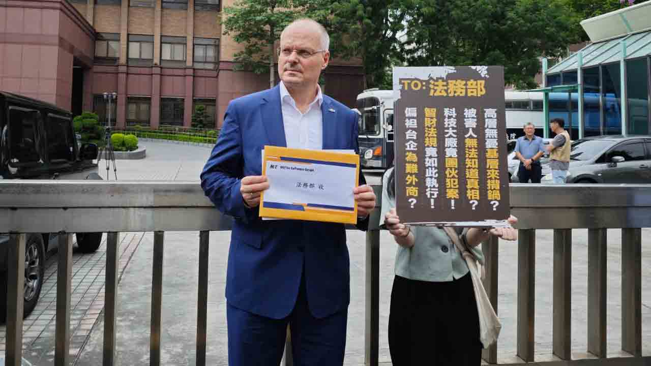 ↑圖說:德商MVTec今日上午赴法務部陳情,希望外商權益受到台灣本土廠商違法侵害時能獲得正義、透明的環境與制度,而非不公平的對待。(圖片來源:MVTec提供)