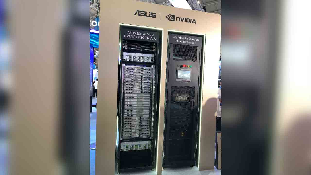 華碩也秀出搭載NVIDIA GB200 NVL72的ESC AI POD的 AI伺服器,擁有72個NVIDIA Blackwell Tensor Core GPU,可執行兆級參數即時推理。(如下圖,記者李錦奇攝影)