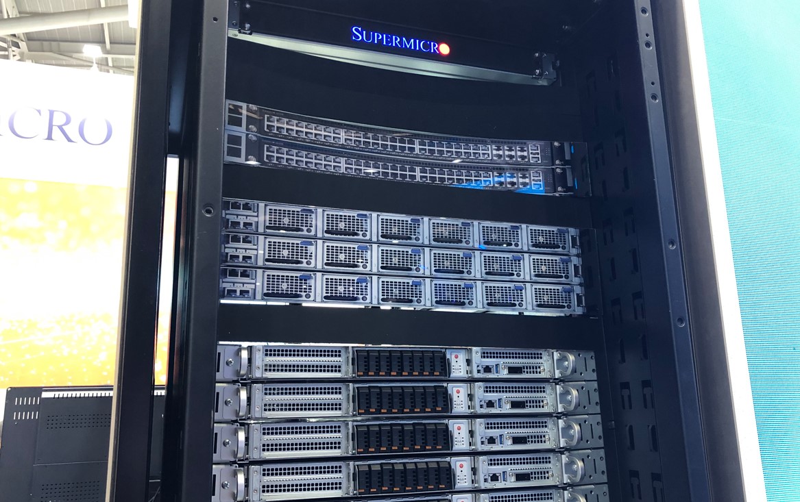 ▲圖說:美超微(Supermicro)秀出搭載NVIDIA GB200 NVL72的AI伺服器機櫃。(如上圖/記者李錦奇攝影)