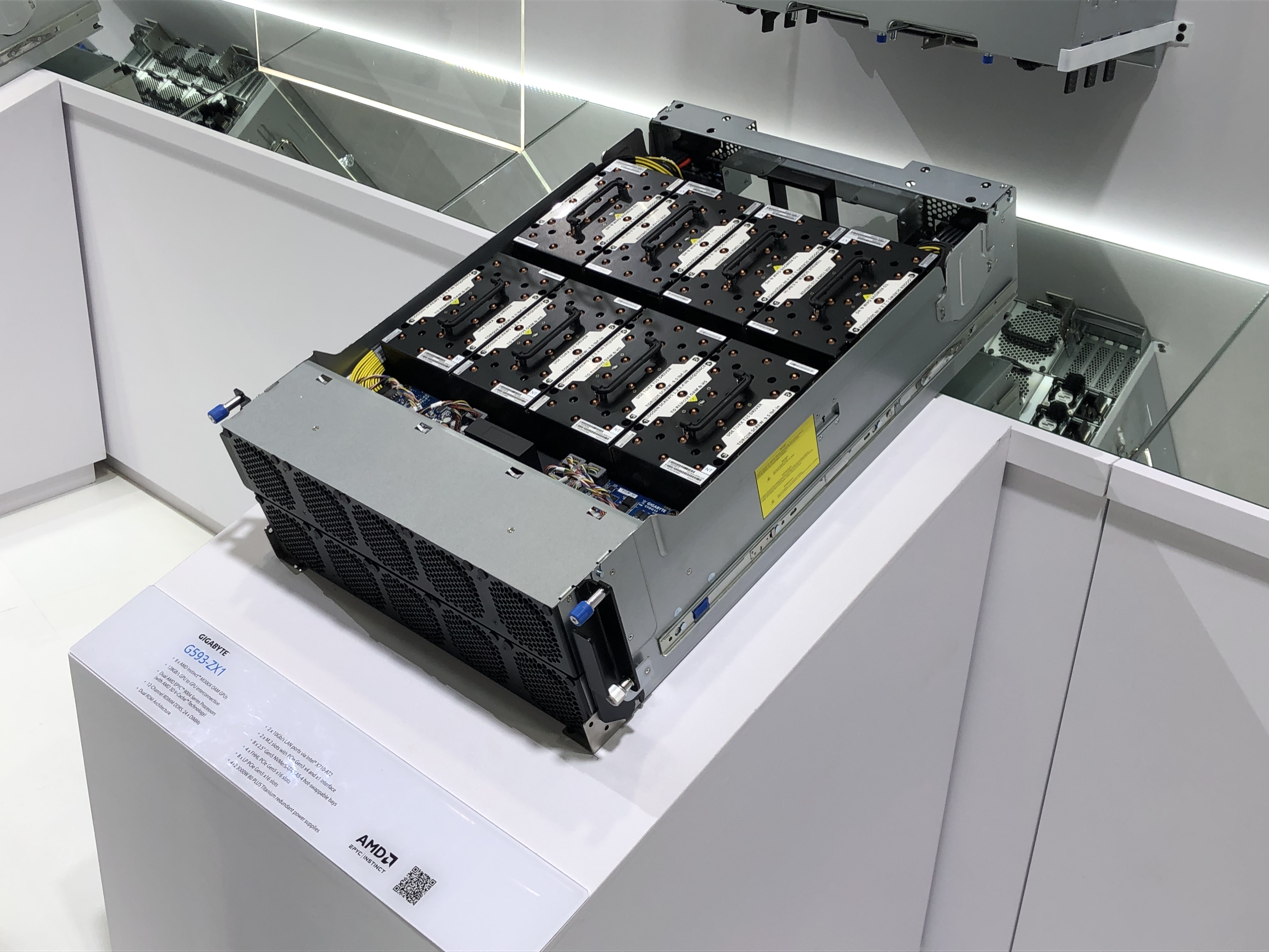 ▼圖說:技嘉展出G593-ZX1伺服器,可支援8個MI300X GPU。(圖/記者李錦奇攝影)