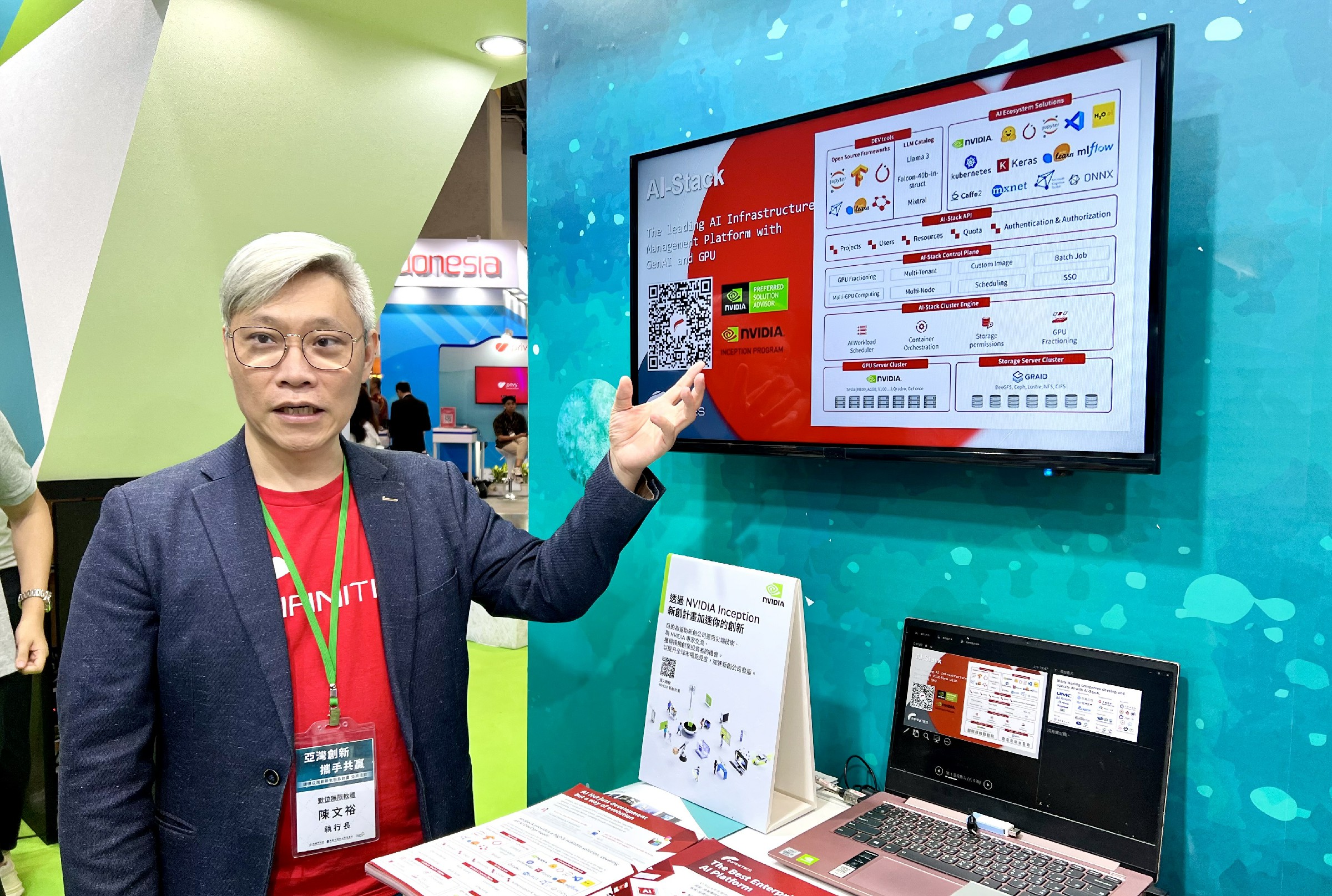 ↑圖說:參展廠商「數位無限軟體科技」,是台灣唯一被 NVIDIA 認證的解決方案夥伴(NVIDIA Preferred Solution Advisor)新創團隊。(圖為陳文裕執行長)。(圖片來源:高雄市經發局提供)