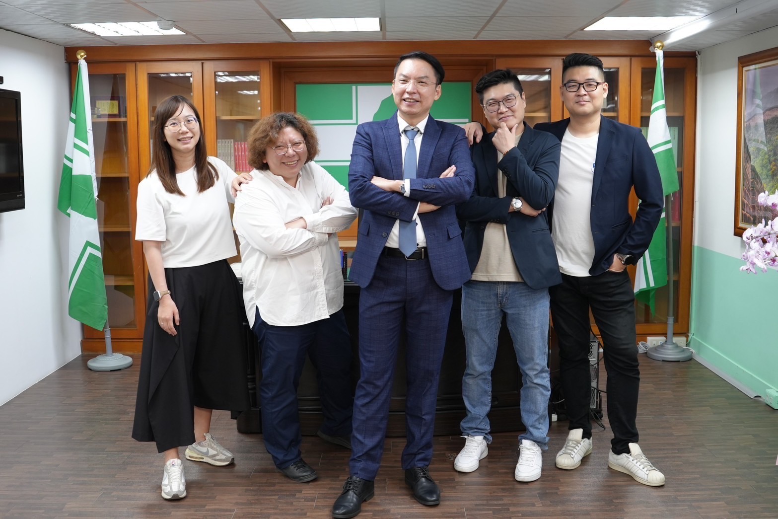 ↑圖說:黃文益與四位黨部幹部(圖片來源:民進黨高雄市黨部提供)